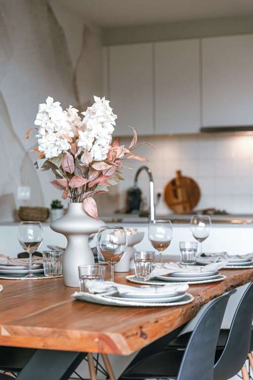 - Spacious dining table encourages gathering and shared experiences over food