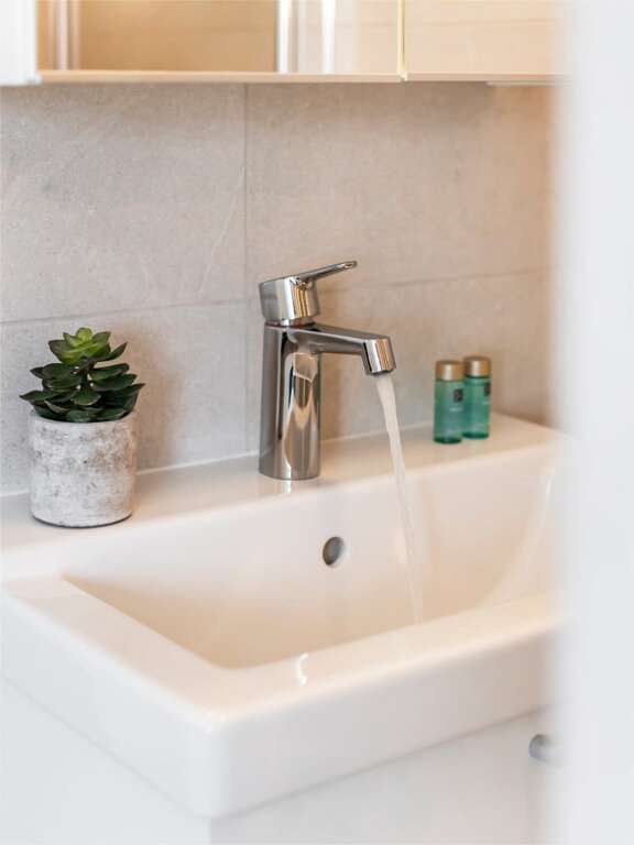 - Two large bathrooms and an additional shower room provide ample space for guests