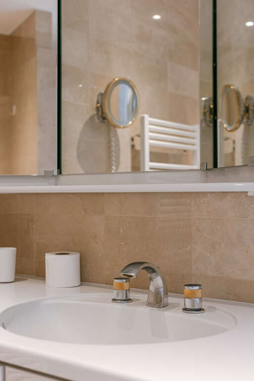 Ideal for families or groups, the apartment features three bedrooms with separate bathrooms, ensuring privacy and ample space for up to six guests. Whether you are here to relax or seek adventure, this location offers a wealth of activities and amenities just steps from your door.