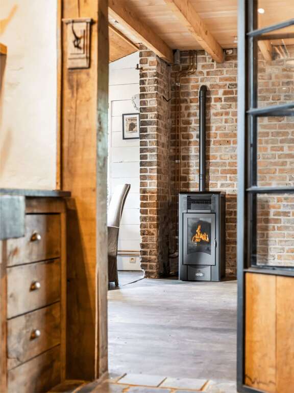 - Living area with a pellet stove, perfect for cozy evenings and gathering with loved ones