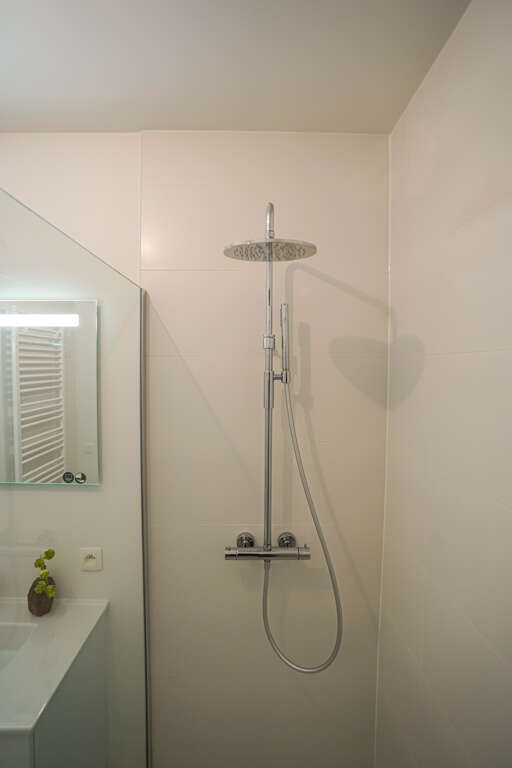 - Well-appointed bathroom featuring contemporary fixtures and a beautiful shower