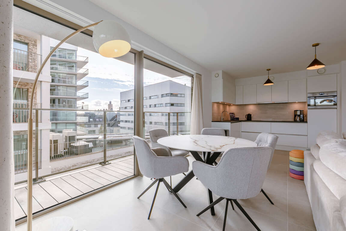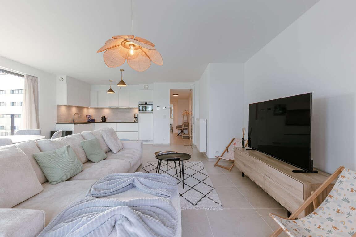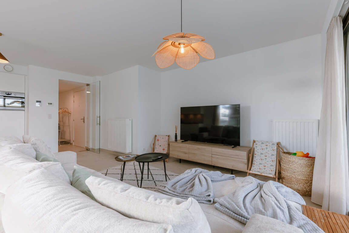 The open-plan living area includes a fully equipped kitchen and a cozy living space, ideal for spending quality time together. Step out onto the beautiful terrace overlooking the peaceful inner courtyard, providing a serene spot to unwind. Thoughtful amenities for young children are provided, and a parking space is available for added convenience. This apartment combines style, comfort, and practicality, making it an ideal coastal retreat for an unforgettable stay in Ostend.