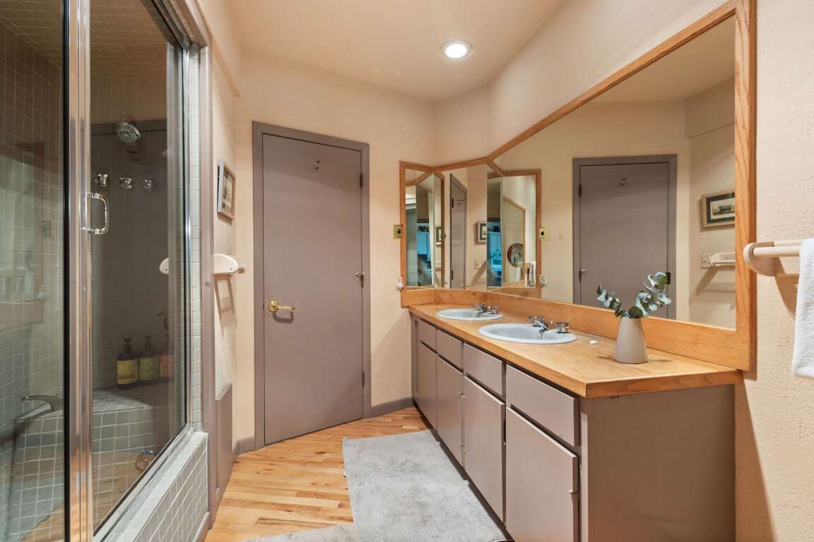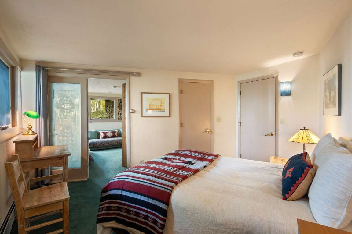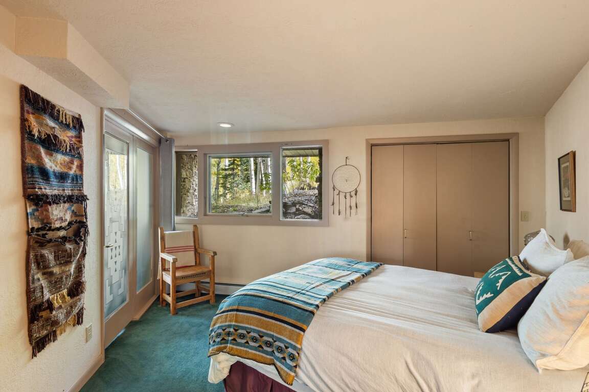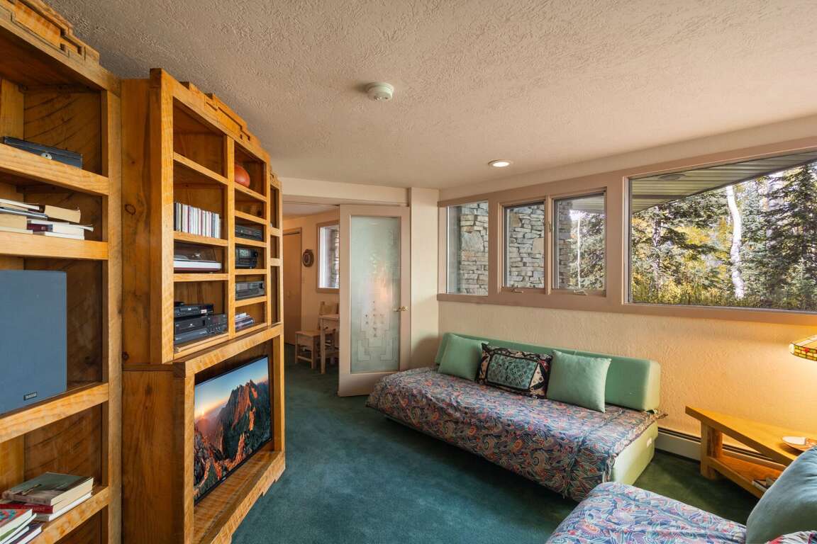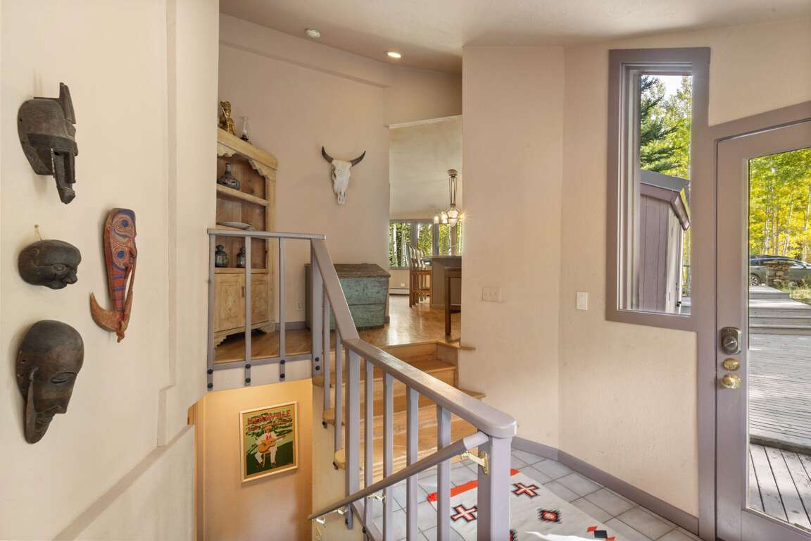 Set amid the serene Aspen forest surroundings at 692 Wapiti Drive in Telluride, Colorado, this classic ski ranch cabin boasts a range of charming amenities designed for comfort and relaxation. The interior design features an island dining area with an antique Art Deco chandelier, a cozy living area with a large couch, a big comfy chair, and a wood stove for warmth. The main bedroom offers a queen bed, ensuite bathroom, and deck access, while the lower level includes two bedrooms with full beds, a shared bathroom, and an entertainment room. For outdoor activities, guests can enjoy the old-style hot tub located on the deck outside, perfect for unwinding under the stars after a day of exploring the beautiful surroundings.
