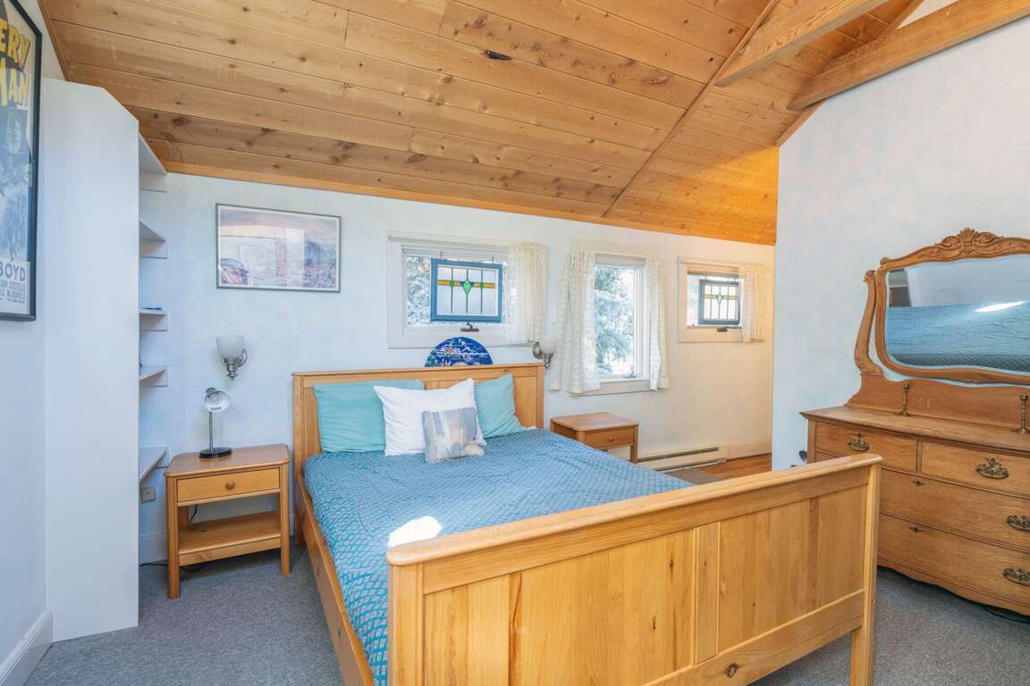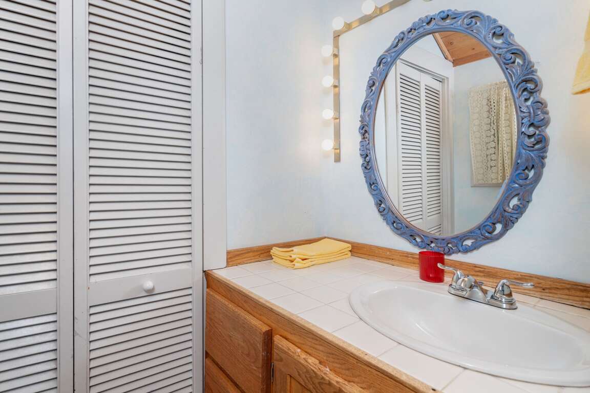 The home has 4 bedrooms plus a bonus sleeping room. The main bedroom, located off the great room, features a queen bed and an en-suite bathroom with a tub and shower. The guest sleeping rooms are located on the second level. The first guest bedroom features a queen-size bed and a crib. The second guest room has a queen. The third guest room has three twins and an en suite bathroom, and the bonus sleeping room has a daybed with a trundle under. There is a hallway bathroom for the queen and the bonus room.<br />