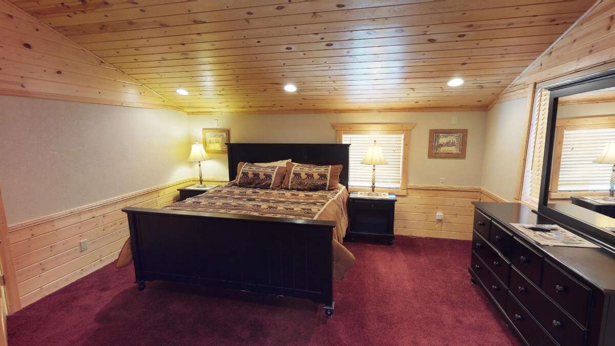Right outside on the back deck is an outdoor bbq grill. Come relax after a long adventure in Yellowstone. Just off the kitchen is a bathroom with a beautifully tiled walk-in shower. Going upstairs is a master bedroom with a private bathroom and a walk in closet. The master includes it's own private walk-out balcony. Upstairs also includes a loft with 2 queen beds and a door to the front balcony.