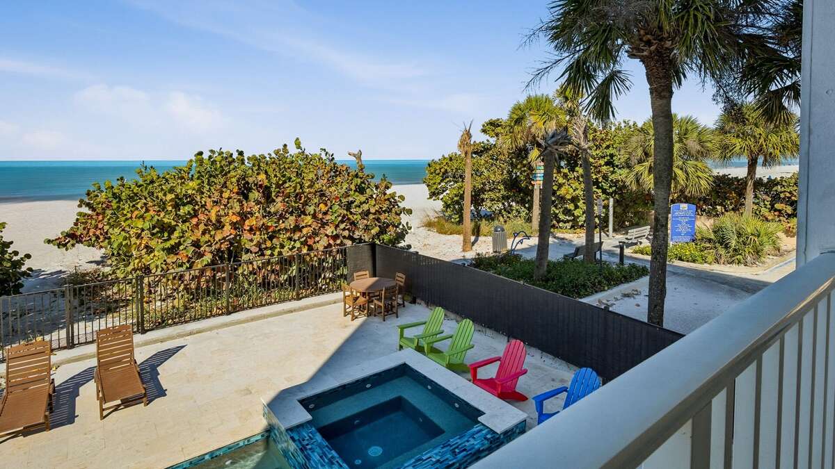 Indian Rocks Beach pet friendly condo rental on the beach with 3 bedrooms and a pool sleeps 8 guests : On the Rocks 1