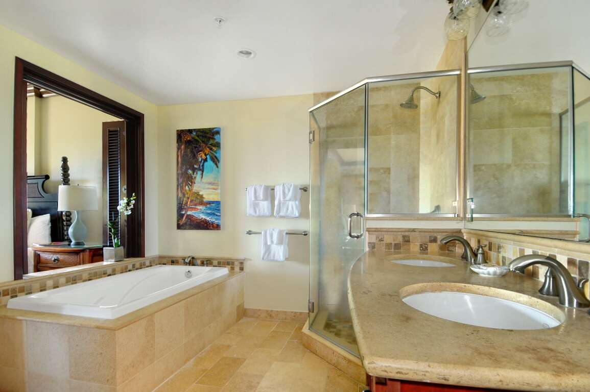 The Second Master Bedroom is one of only a few to have two extra-long full-size beds and a master bath of its own, with a soaking tub and a third bathroom with a shower. There is a queen size sofa sleeper to easily accommodate up to 6 people; there is an additional resort fee for having more than 6 guests, max of 8 guests.