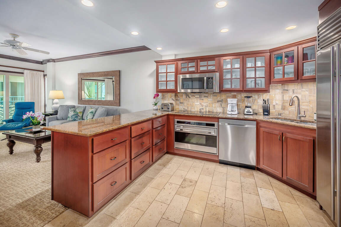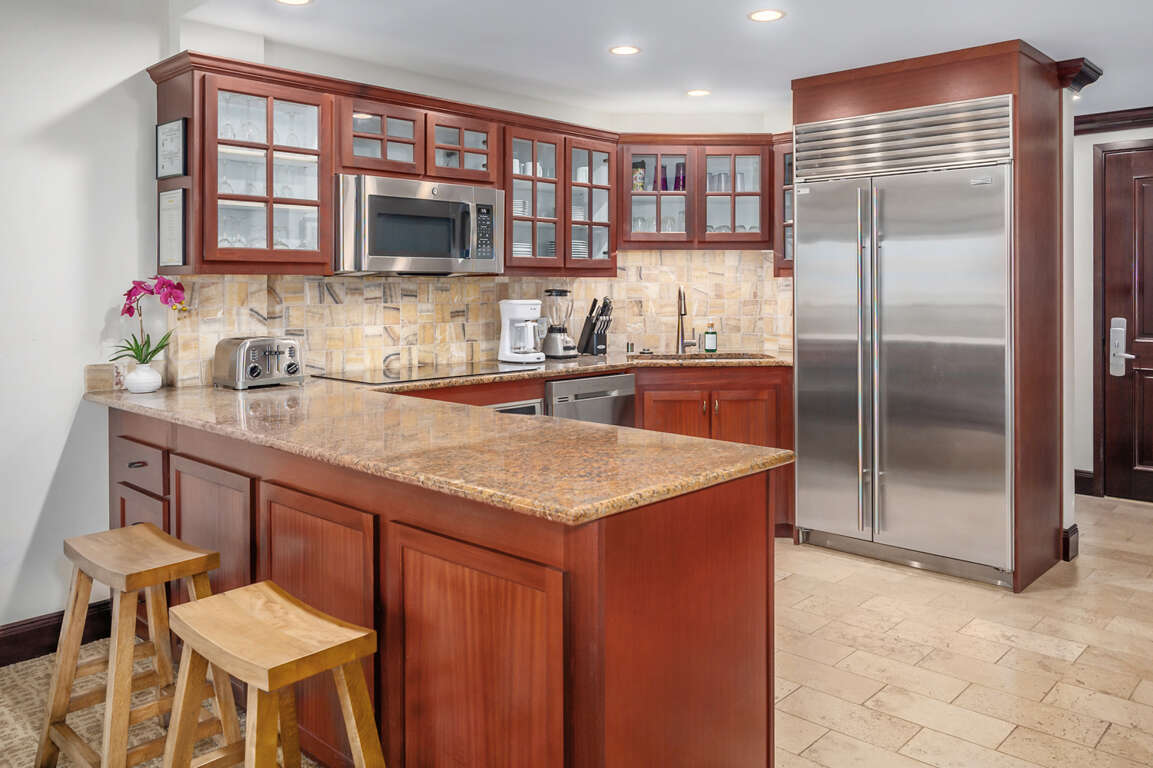 Enjoy a vacation of a lifetime in Paradise with the finest designer furnishings, lush bedding and linens, the ultimate gourmet kitchen with state of the art equipment: Sub-Zero refrigerator for perfection in freshness and wine temperature, Wolf appliances designed by chef's with a passion, cabinets made of imported fine mahogany, from Africa, floors are made of 100% natural stone Peruvian travertine.
