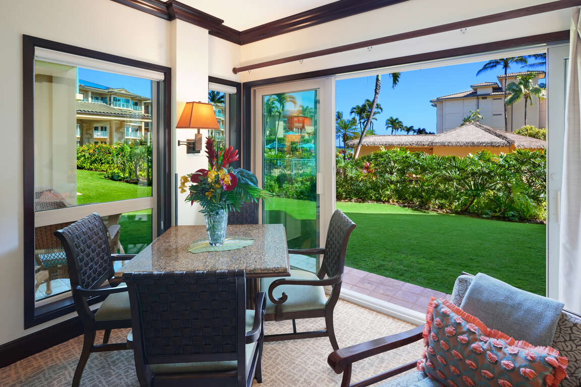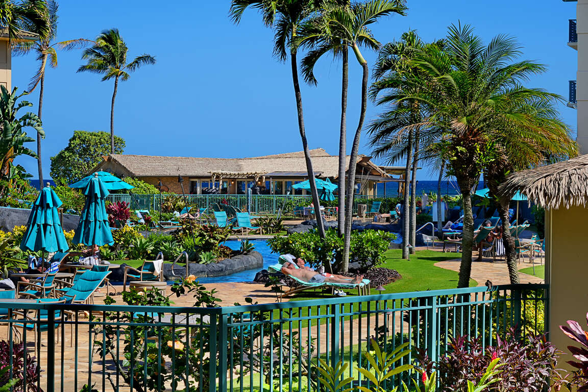 The resort is perfectly located between Princeville/Hanalei and Poipu making all activities a short driving distance. Directly across the street is Safeway, Long's Drugstore, Starbucks, and many more shops and restaurants. A short walking distance away is the exciting Coconut Market Place with over 60 shops and restaurants. Lydgate Park is only a 5 minute drive away. Lydgate has a rocked in ocean pool perfect for children to swim and play in the sand. There are two extraordinarily large play structures sure to become a kid's favorite place to visit.