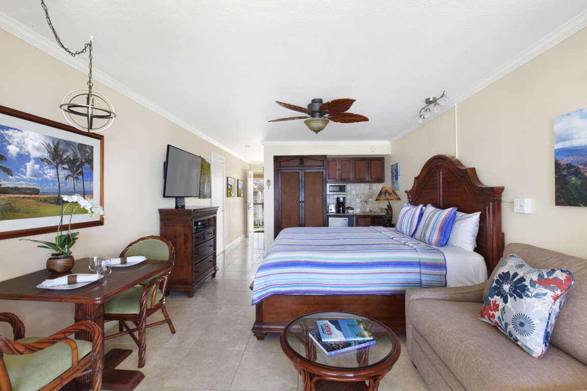 This studio has AC, 50" TV, and free WiFi! There are no resort fees and parking is Free! Come relax in the comfort of your own Home Away from Home at the beloved Islander on the Beach 352! Kauai is calling!