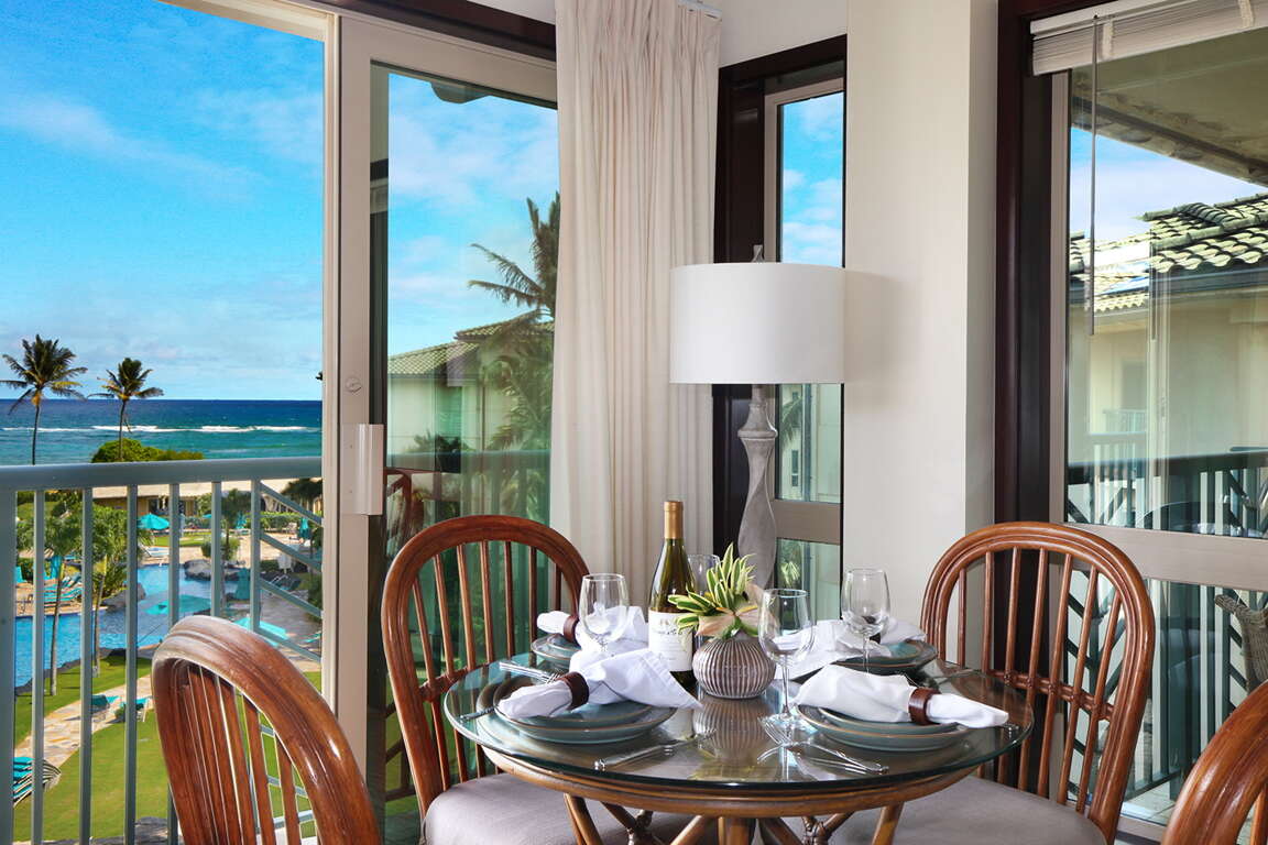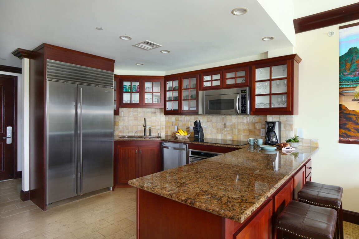 You'll enjoy this beautiful ocean and pool view condo with central air conditioning, HDTV surrounded by fine designer Polynesian-style furnishings, 1 king bed, 1 convertible sofa (queen size), luxurious bedding and linens, the ultimate gourmet kitchen with state of the art equipment, and a washer / dryer in the unit. Comfortably sleeps up to 4.