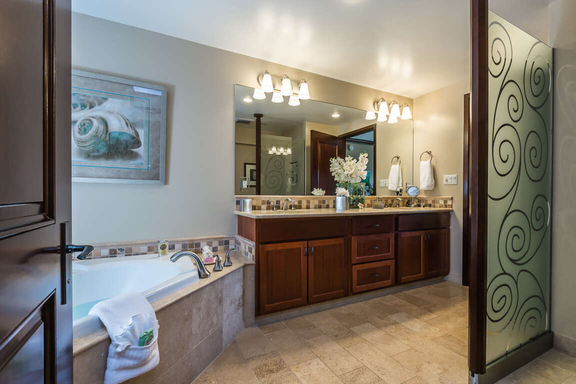 Comfortably sleeps up to 6 with a King bed in the Master Bedroom Suite with a desk and a Master Bath with its own tub for luxurious baths and a separate shower. The Second Master Bedroom Suite is one of only a few to have two twin beds* and a Master Bath of its own, with a soaking tub and a third bathroom with a shower. There is a queen size sofa sleeper in the living room to easily accommodate up to 6 people. *The twin beds can be converted to a king upon request.