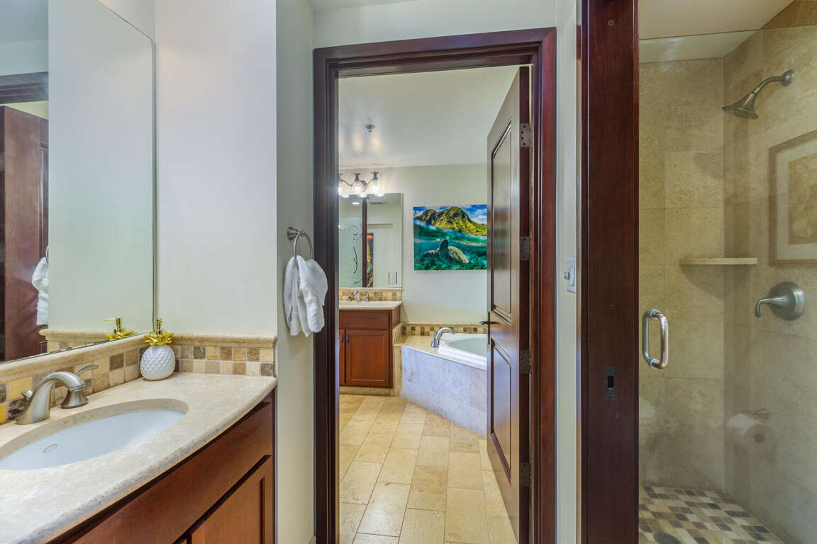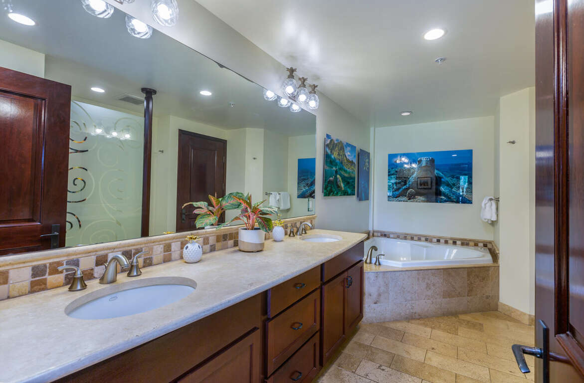 This Luxury Condo Offers Guests a Gorgeous View of Sleeping Giant Mountain and peek ocean view from the lanai. This Condo is a 2 Bedroom, 3 Bathroom Condo at 1st Class Waipouli Beachfront Resort & Spa on the beautiful island of Kauai. This condo has easy access to the pool and beach with quiet privacy when returning from the pool or exploring the island.