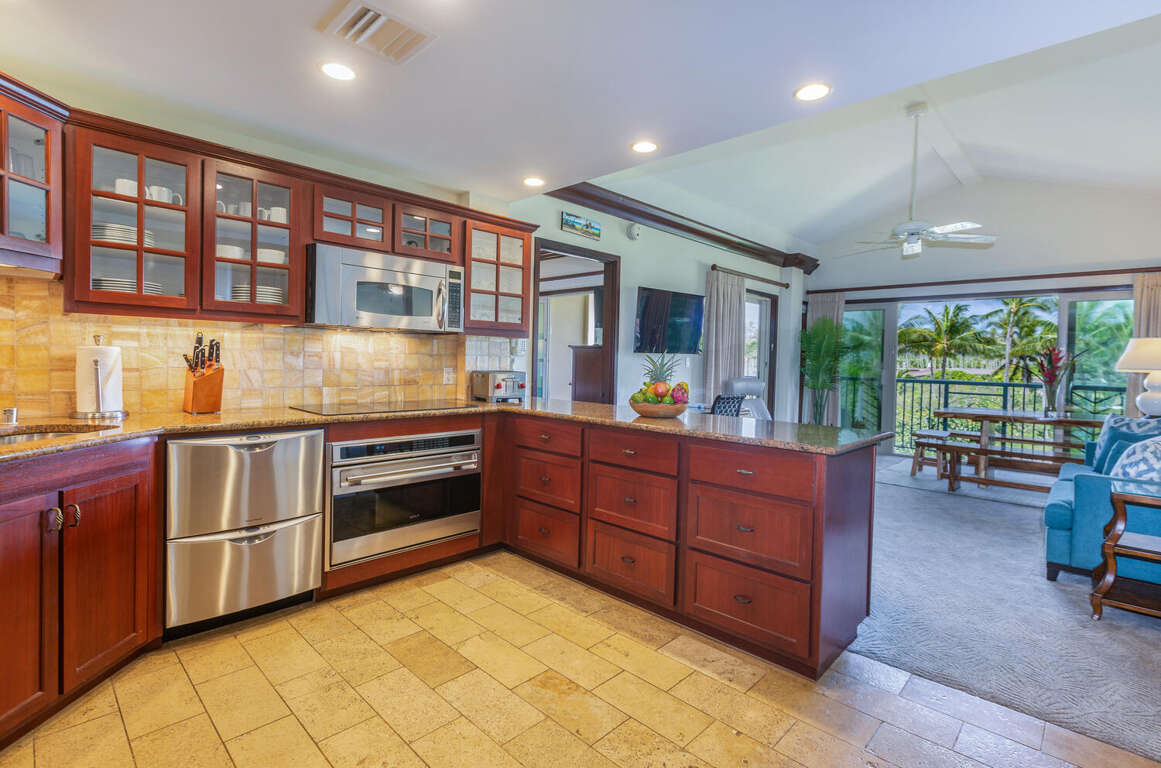 "Tastfully decorated, clean, well appointed kitchen with high end appliances. Beach gear for your daytrips to Tunnel or Poipu beaches a short trip for Kapaa, but no need because the chairs are waiting for you on-site at a gorgeous beach on-site with miles of beachfront trails for your morning walk. Towels waiting for you at pool and gym just downstairs. Close access to parking and Old Town Kapaa full of local owned restaurants and shopping. Guest bathroom huge with guest room'sown lanai as well as outside dining area with sunset views over acres of palms. Don't miss the best local music on the island at the on-site Tickibar on Wednesdays. Gardens on-site were beautiful. Mahalo and Aloha to the friendly resort staff for keeping the resort in top notch shape. This unit is a great value which I highly recommend when visiting Hawaii". Reviewed By: BP