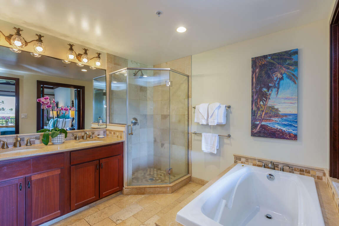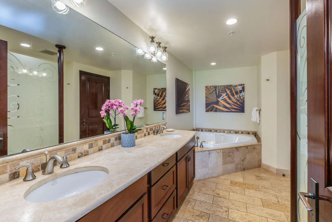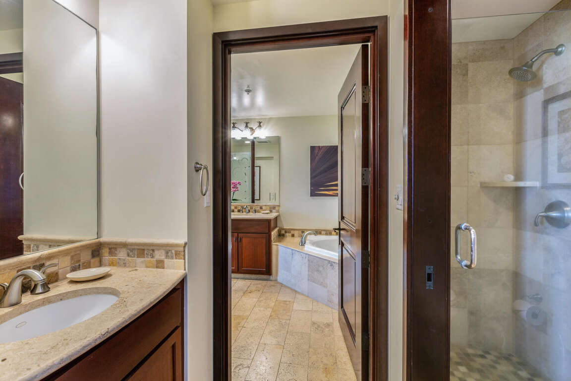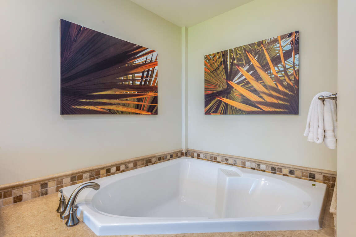 The Second Bedroom has a queen bed, and a master bath of its own, with a soaking tub and a third bathroom with a shower. With the queen size sleeper sofa this condo can easily accommodate up to 6 guests.