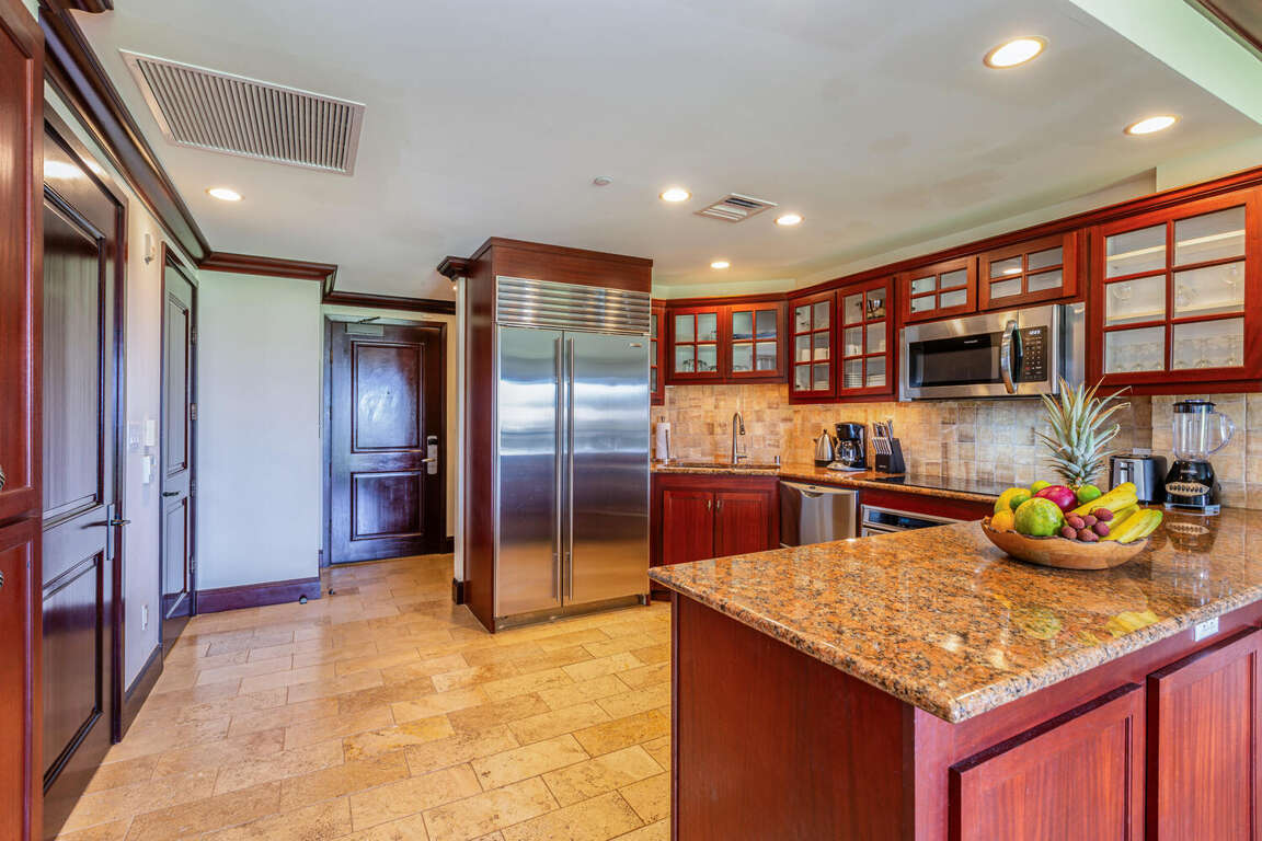 Fine Polynesian-style furnishings, luxurious bedding and linens, the ultimate gourmet kitchen with state of the art equipment: Sub-Zero refrigerator for perfection in freshness and wine temperature, Wolf appliances designed by chefs with a passion, cabinets made of imported fine mahogany, from Africa, and 100% natural stone Peruvian travertine floors.