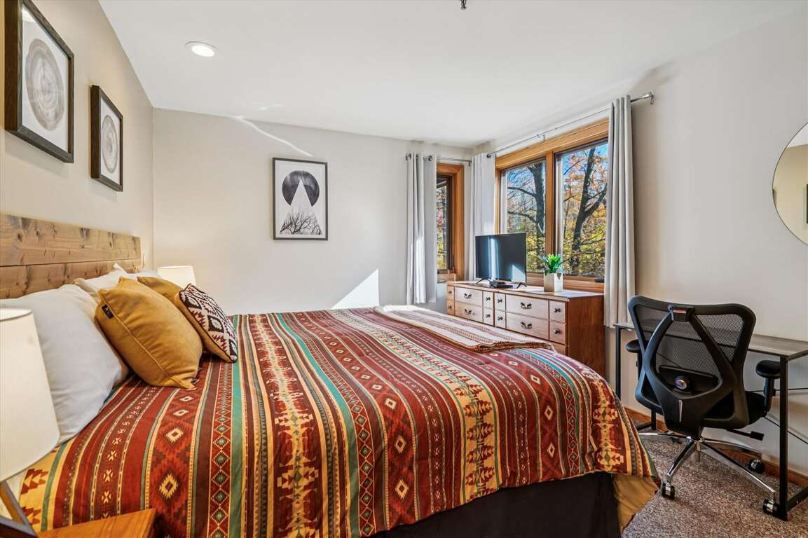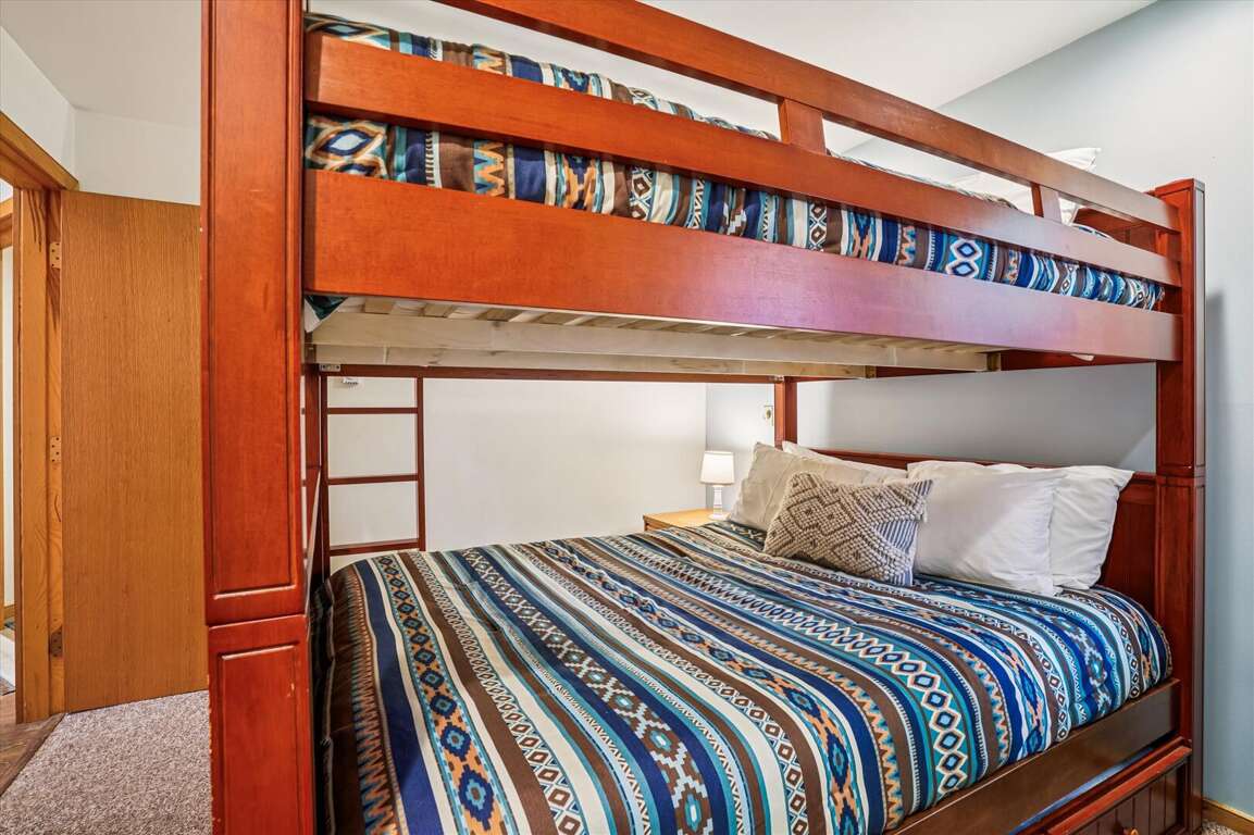 Experience restful nights on new memory foam mattresses and plush down featherbeds, featuring a king bed in the master bedroom and queen-over-queen bunk beds in the guest room. Wake up on chilly winter mornings to the comfort of radiant floor heating in both bathrooms, and unwind in your personal in-unit sauna and jacuzzi tubs after a day of adventure.