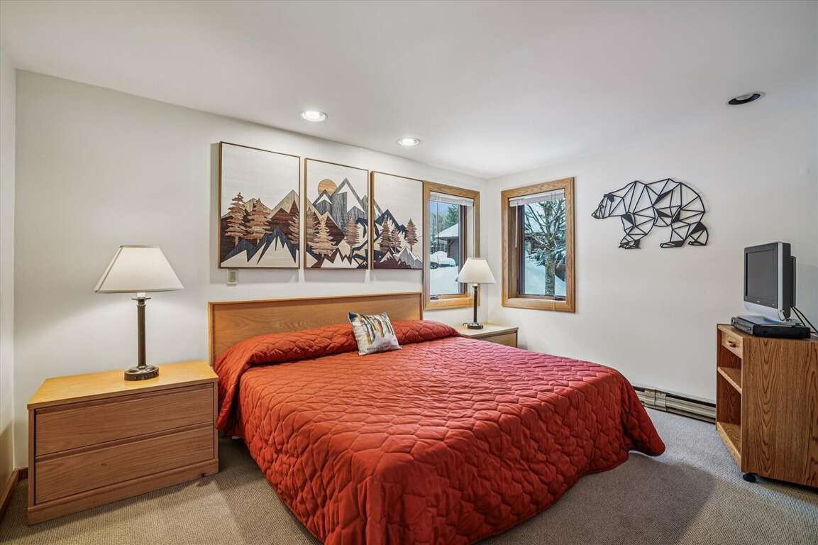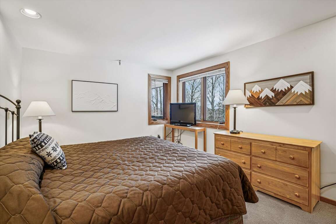Nestled within the Luxurious Highridge Condo Unit B20 in Killington, the bedroom configuration offers a harmonious blend of comfort and functionality, catering to the diverse needs of guests. The condo comprises three elegantly appointed bedrooms, each designed to provide ample space and privacy. The master bedroom boasts a king-size bed, offering a lavish retreat for relaxation. The second bedroom is furnished with a queen-size bed, while the third bedroom features two twin beds, making it perfect for families or groups of friends. All bedrooms are thoughtfully designed to ensure a restful night's sleep, with plush bedding and ample storage. These spacious and well-appointed bedrooms, along with the comfortable sleeping arrangements, provide a peaceful haven for guests to unwind after a day of adventure in Killington.