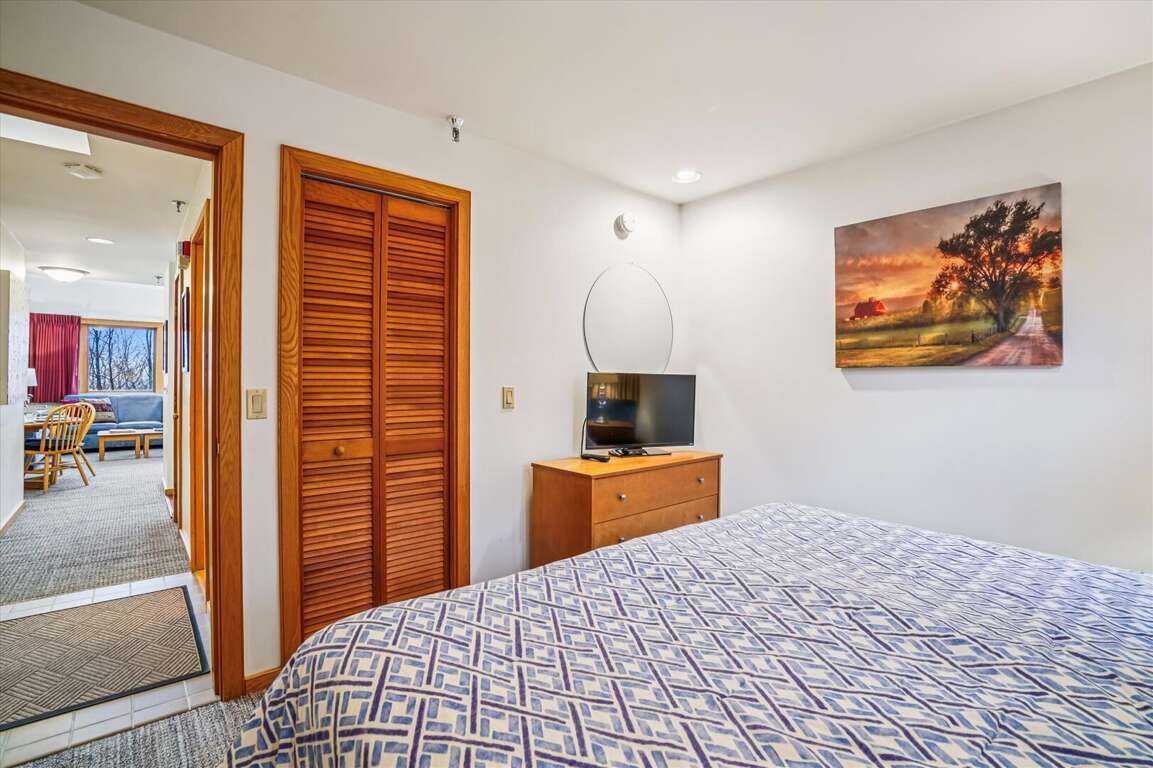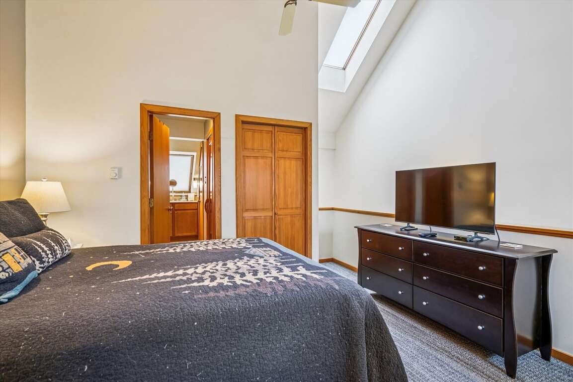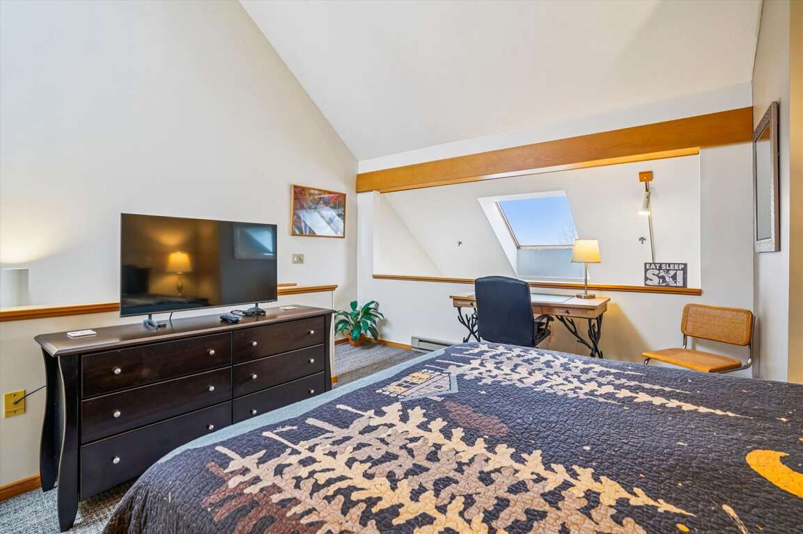 Loft with queen-sized bed, flat-screen TV, and attached full bathroom