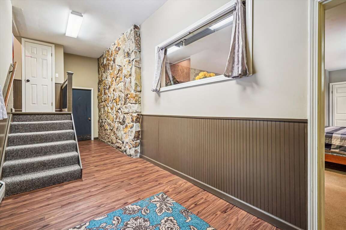 On the main level, you’ll find a fully equipped kitchen, perfect for preparing delicious meals to enjoy with family and friends. The inviting dining area flows seamlessly into the living room, where a large flat-screen TV awaits, ready for streaming your favorite shows or enjoying a movie night together.