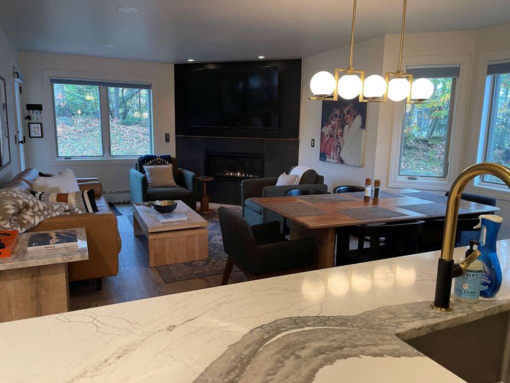 Discover Pico Resort Unit E106 in Killington, VT, a charming mountain view condo furnished with 3 bedrooms, a cozy fireplace, and modern amenities — perfect for your next house rental getaway.