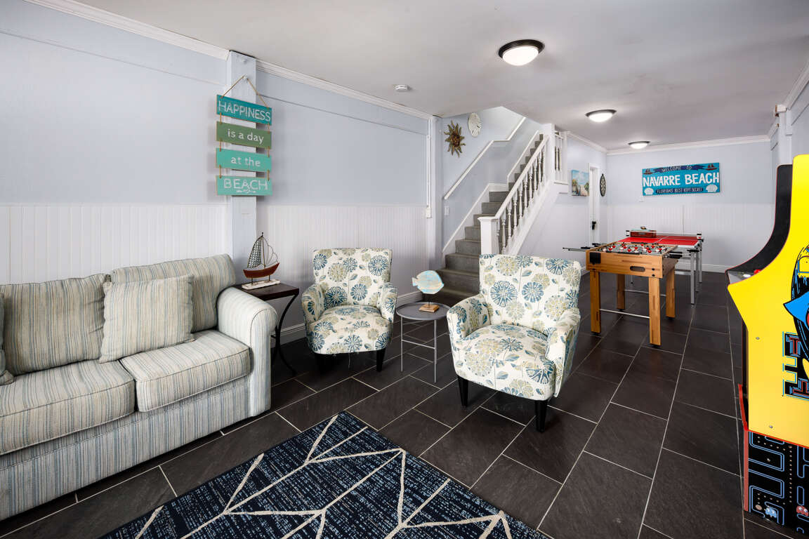 This beautiful two-story home has it all! Go up a flight of stairs to enter the home, as you walk in, you will realize you have just entered paradise! Upgrades and upscale finishes throughout. Seascape provides all the comforts of home while being close to local beaches and family fun. Retreat on the bay while being just one block from The Gulf of Mexico! There is a small balcony at the front of the house and a large deck on the back. Sit and enjoy your morning cup of coffee or an evening meal while taking in the bay front views. Walk out the French doors and enjoy a day at your PRIVATE Beach or grill your seafood with the gas grill on the back deck. Take a stroll or ride a bike down the beach path in this quiet neighborhood. Visit the local restaurants, the Navarre Fishing Pier, or the Navarre Beach Marine Park just down the road. There is room for two cars under covered parking and two cars in the driveway.This 4 bedroom/3 bathroom home includes: A large fully stocked kitchen for preparing meals, a breakfast bar, and a separate dining area. An open floor plan living room with an abundance of seating, a large flat screen TV, floor-to-ceiling glass sliders with panoramic views, and a balcony overlooking the bay. A master bedroom with a king-size bed, a flat screen TV, double walk-in closets, and a private bathroom. A second bedroom with a queen-size bed. A third bedroom with two sets of bunk beds (Twin over full). A second full size bathroom. Laundry room with full size washer and dryer. A partially finished garage serves as a first-floor guest retreat with a game room, a queen-size sleeper sofa, a separate bedroom with a queen-size bed, and a full-size bathroom. Open the French doors off of this guest suite and you are outside in the open-air patio with outdoor furniture. 12 Cup/K-pod coffee centerKeyless Lock- Self check-inFree wireless internetCommunity pool (Not heated)Community access to the adjacent Santa Rosa County ParkPrivate beach on the soundPaddle boards, Kayaks and bikesTwo backpack beach chairs and 1 beach umbrellaBoat slip available!There is one assigned boat slip for this property. No boat or trailer parking in driveway or on the side of the street. You can contact the following for storage: Navarre Boat and RV Storage, Emerald Coast Boat and RV Storage, Lona's Boat and RV StorageNO RV, Bus, U-Haul or trailer parking in community or drive wayWe go the extra mile to make sure you are comfortable: Plenty of pillows on each bed along with extra sheets and blankets if needed. Plenty of bath towels and beach towels. Starter set of paper towels, toilet paper, trash bags, dishwasher soap, dish liquid, laundry detergent, bath soap, shampoo, and conditioner. All-purpose cleaner. One of the areas only All Local dedicated teams. Always available if you need us.We have a pontoon boat that is rented exclusively to our guests. The boat needs to be reserved at least 24 hours in advance. The boat launches out of The Fort Walton Beach Yacht Basin.Discounted monthly rates available November- February. To get a monthly rate quote during this time frame you must enter a 28-night stay or more. Feel free to contact us should you have further questions.