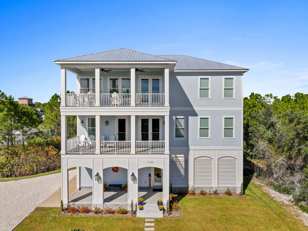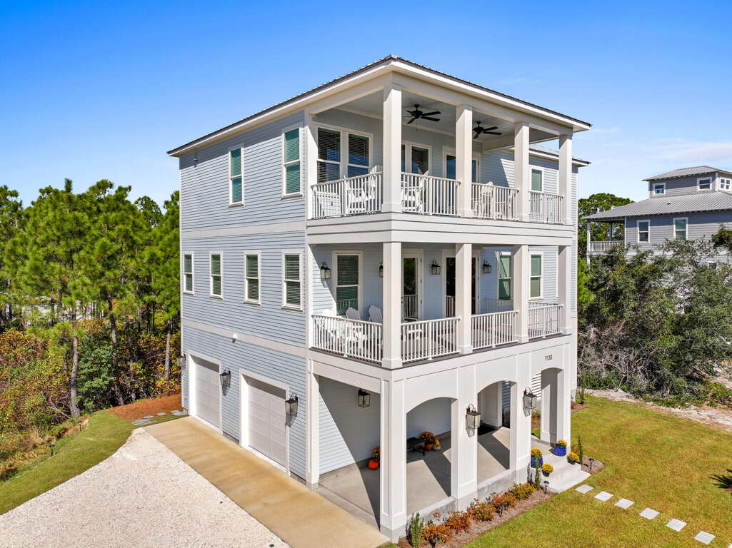 Sea Turtle Crossing is a stunning 5-bedroom, 3-story vacation home designed to make your coastal getaway unforgettable. With room for up to 14 guests, this spacious retreat is perfect for families and groups. The home features an in-home elevator for easy access across all levels and beautifully crafted outdoor spaces perfect for enjoying the Gulf Coast breeze. The home is also equipped with laundry rooms on both the second and third floors. Located just a short walk from the beach and private community pools, Sea Turtle Crossing offers the ideal combination of luxury, convenience, and comfort for your dream vacation.