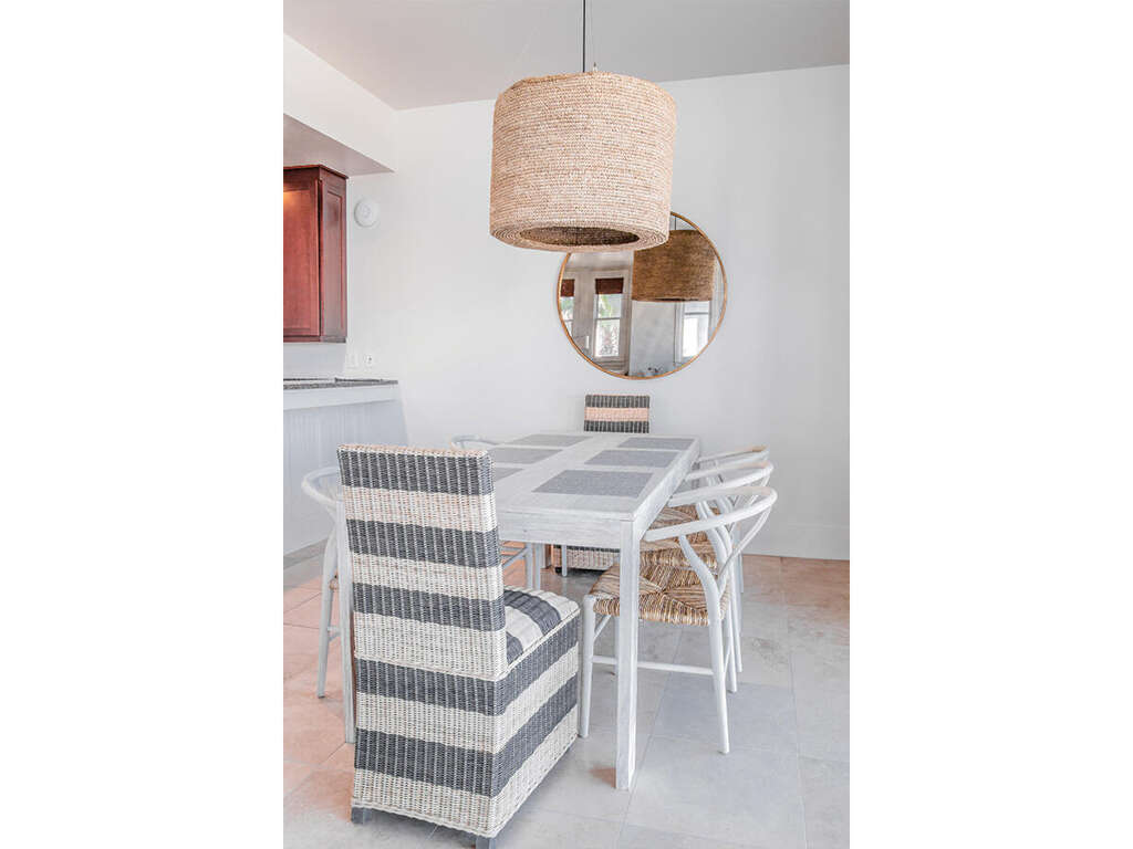 Keurig K-cups. Take a seat around the table for eight, at the four-person breakfast bar,