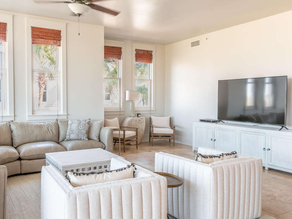 Living room and all four bedrooms are equipped with large smart TV's with cable tv