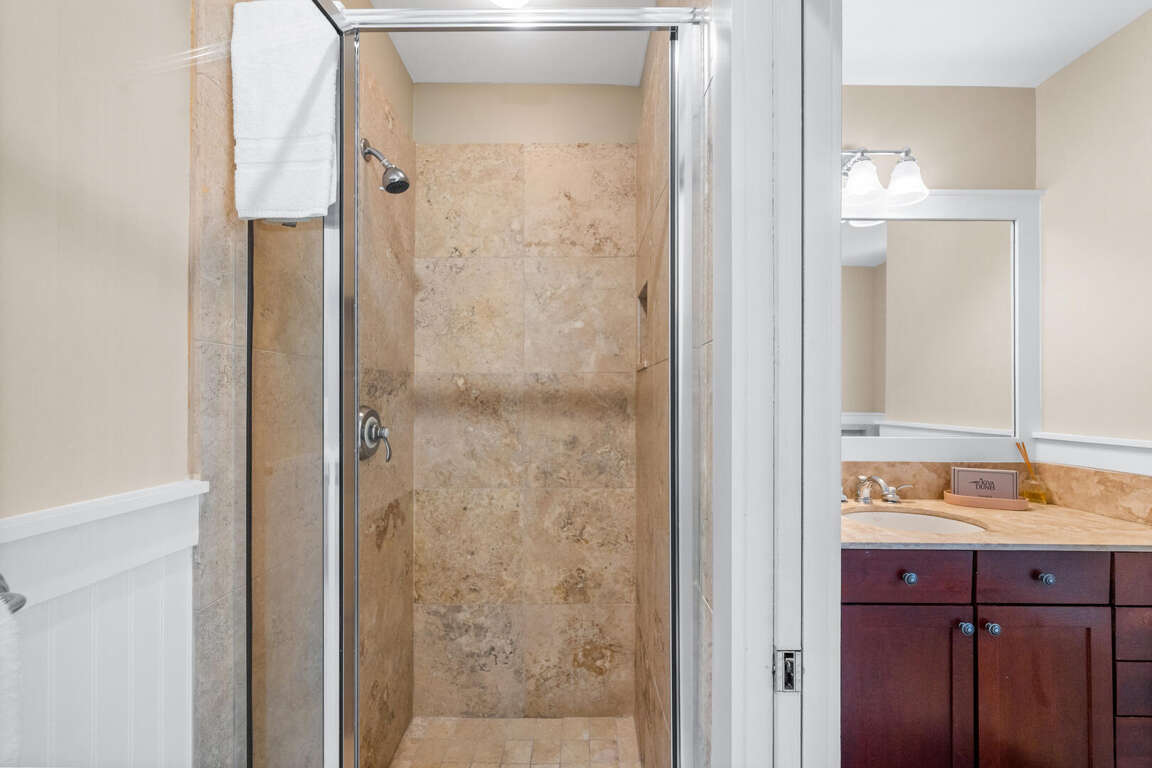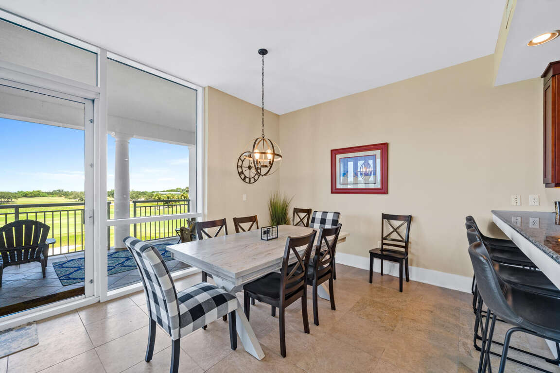 Village A Unit 301 stands as a well-appointed retreat for families, friends, or avid golfers. The condo accommodates up to 12 guests, providing ample space with three bedrooms on the main floor and an additional bedroom upstairs. Equipped with beach chairs and toys, this condo ensures a delightful beach experience. The main level boasts a spacious family room, a high-end kitchen, three bedrooms, three baths, and an expansive balcony with a captivating view of the 18th green. The second level offers a balcony overlooking the ocean, two queen-size beds, and a full bath with a jacuzzi.