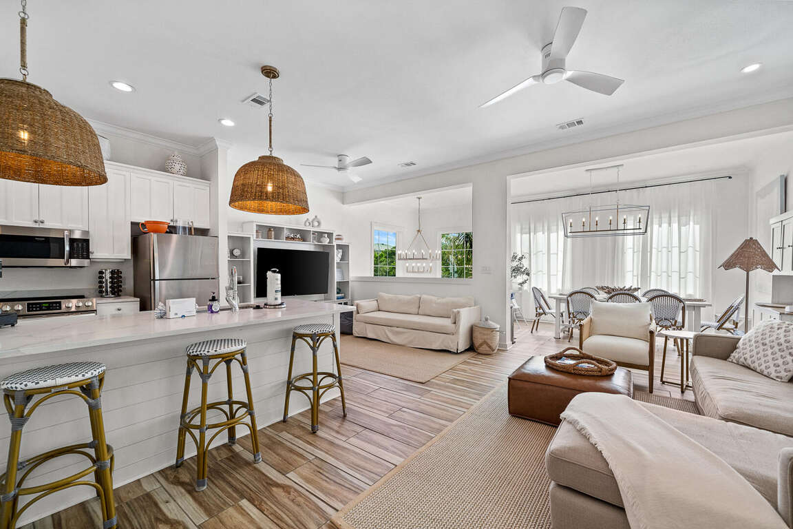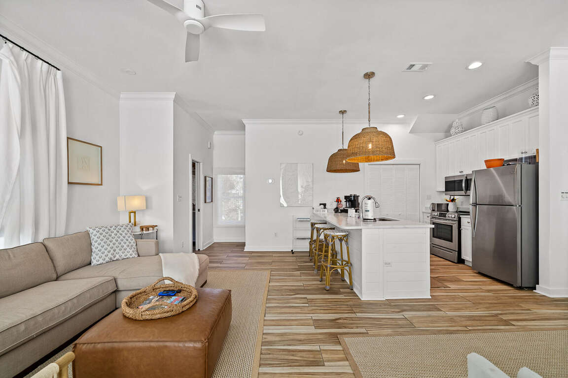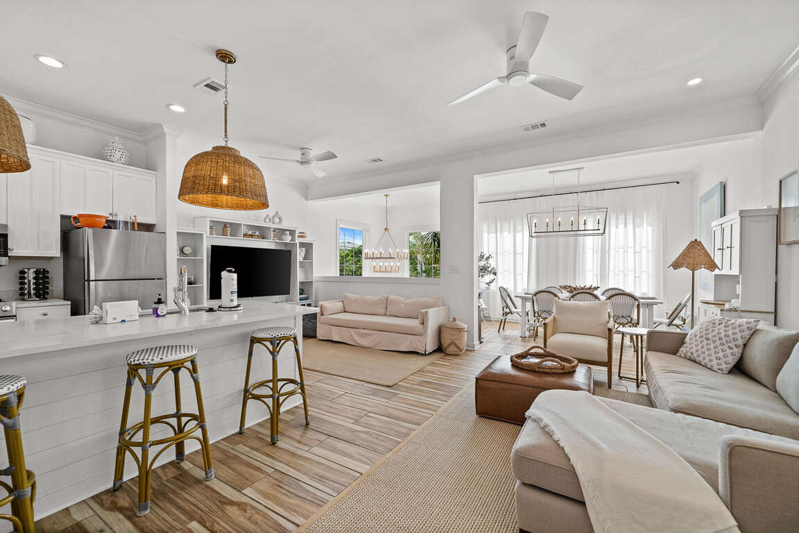 *Main living room, dining + kitchen, W/D, powder bath