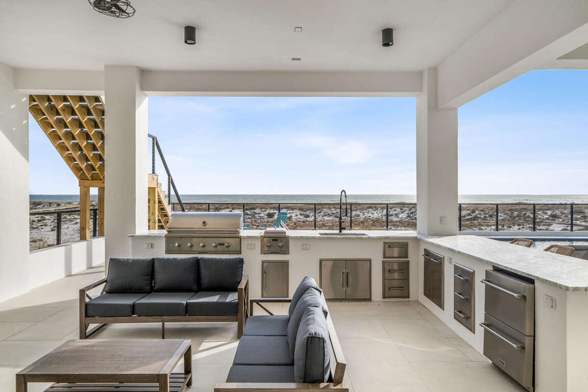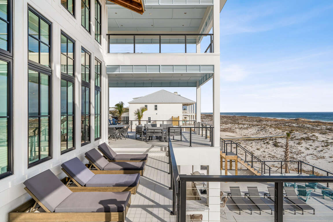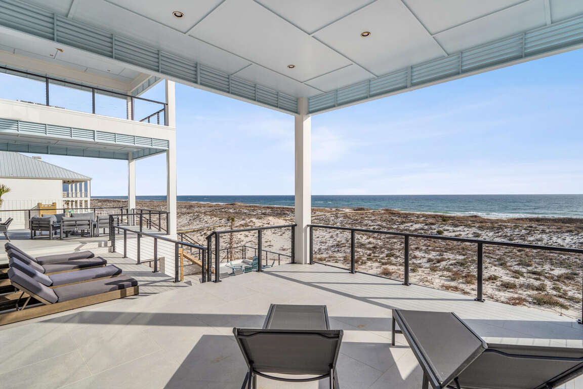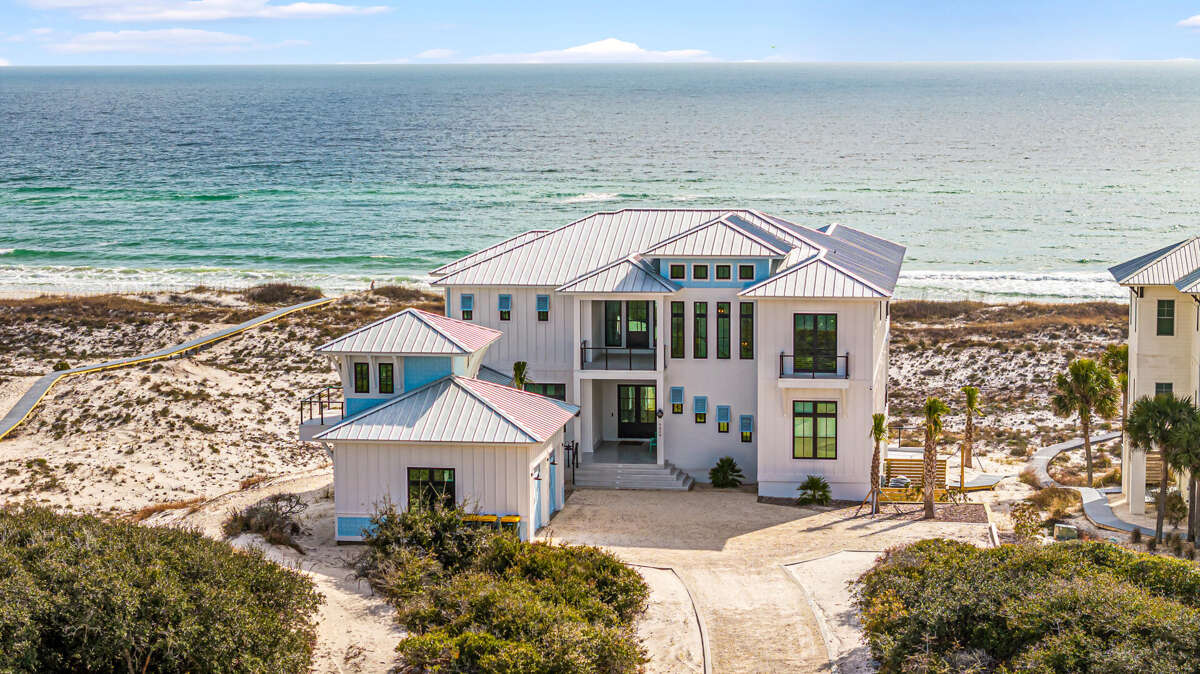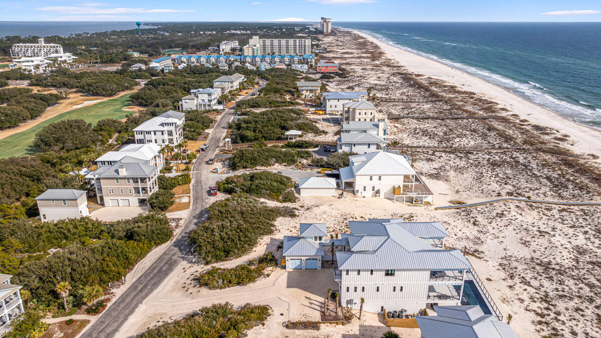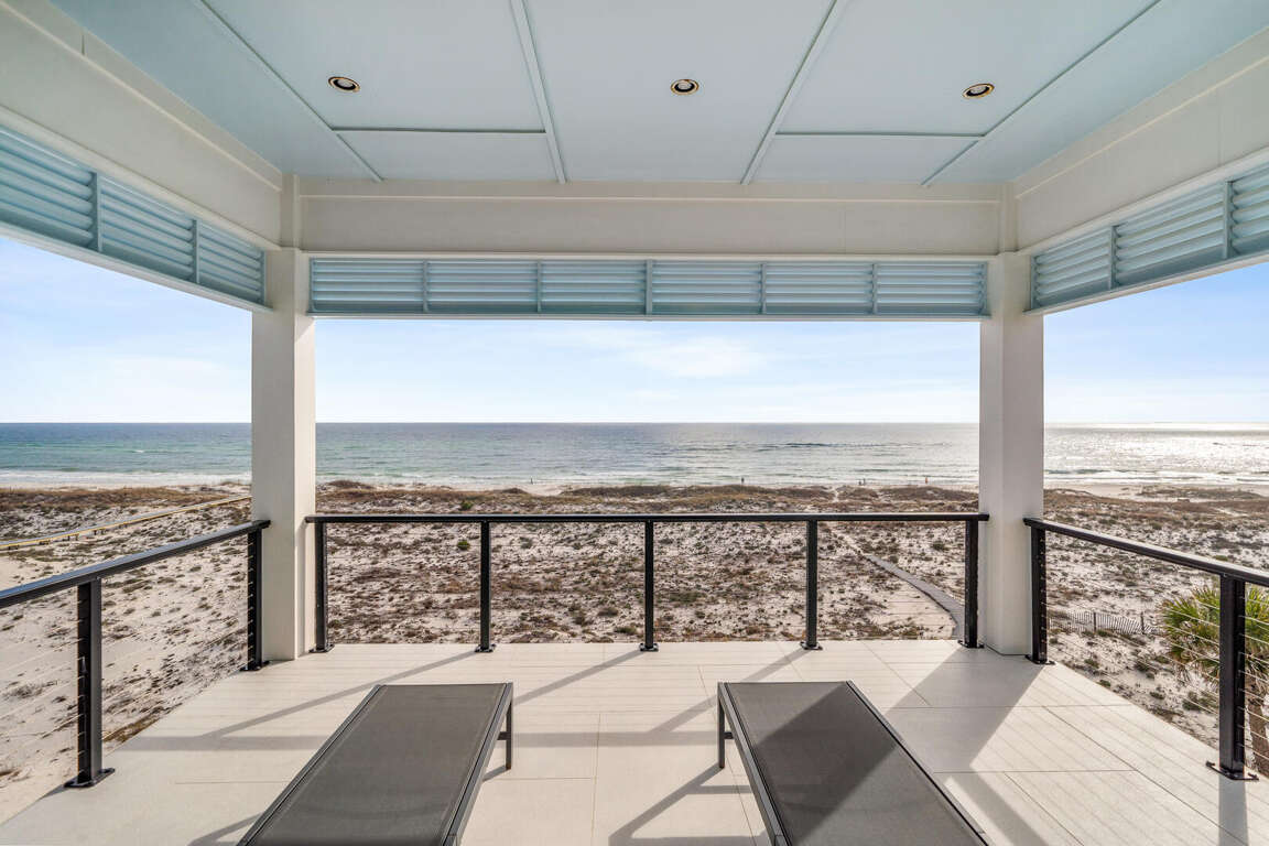 Totally Beachin’ is finally here! This direct beachfront new construction home was just completed in early 2025 and has it all! From the moment you enter the home on the 2nd floor level, you are immediately struck by the breathtaking two story views of the gulf from the family room. The 5 bedroom, 6 and 1/2 bath property comes with 3 king bedrooms and en-suite bathrooms on each of the 3 levels all with large decks giving you direct, unobstructed views of the ocean. It has 1 queen bedroom on the front side of the home with views of the golf course and bay and 1 bunkroom complete with two queen beds on the bottom and two twin beds on top. The first floor comes complete with a game room, arcade room with gaming system, ping pong table and a very large movie theater room. Head out on to the first floor deck and experience the outdoor living, bar and grill area, outdoor shower and stunning swimming pool with direct views of the Gulf. From the 1st floor deck, step onto a private walking path that takes you straight to the beach. The home comes equipped with a full scale kitchen, complete with two islands and a dining room table. There are washer and dryer sets on both the 1st and 2nd floors, multiple refrigerators and wine refrigerators in the kitchen and first floor game room. There are coffee stations on all three levels and an elevator that services all floors of the home.