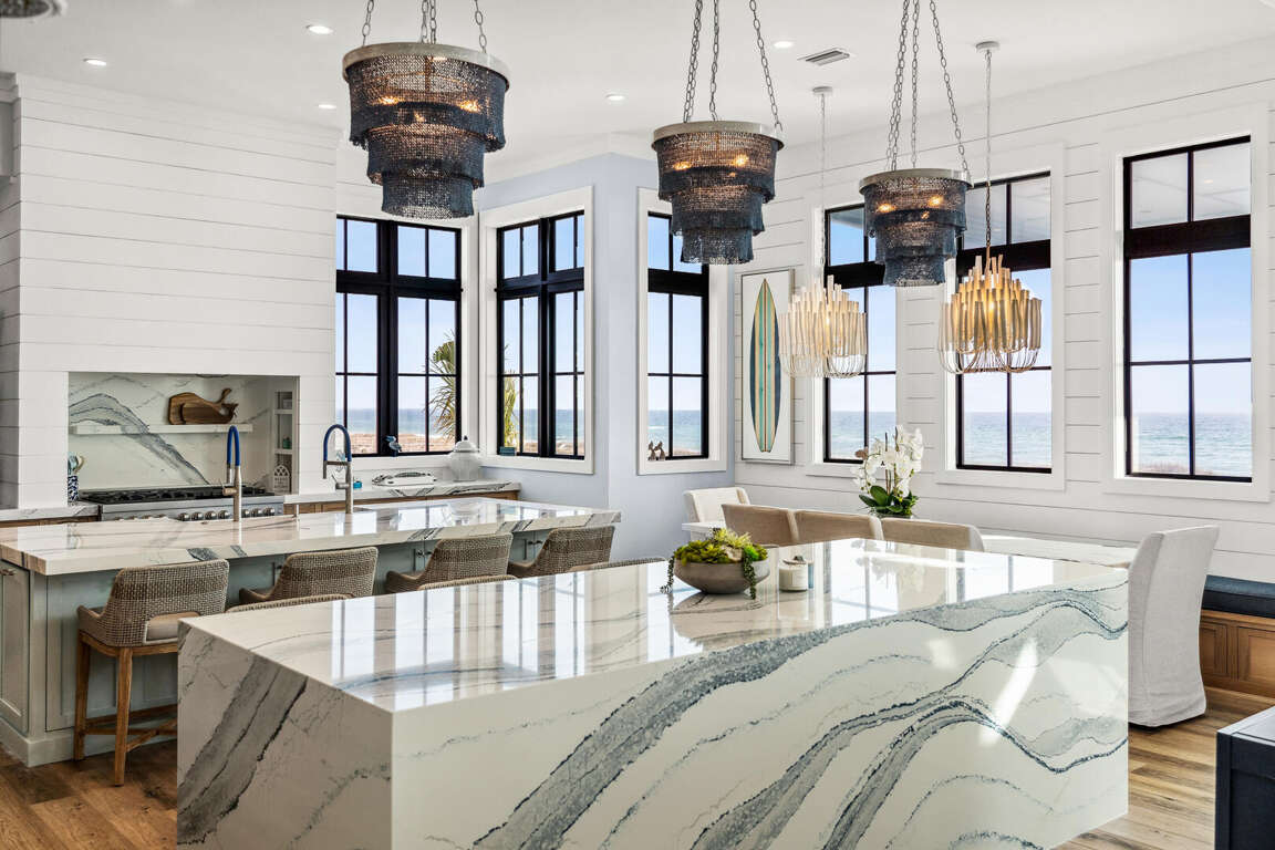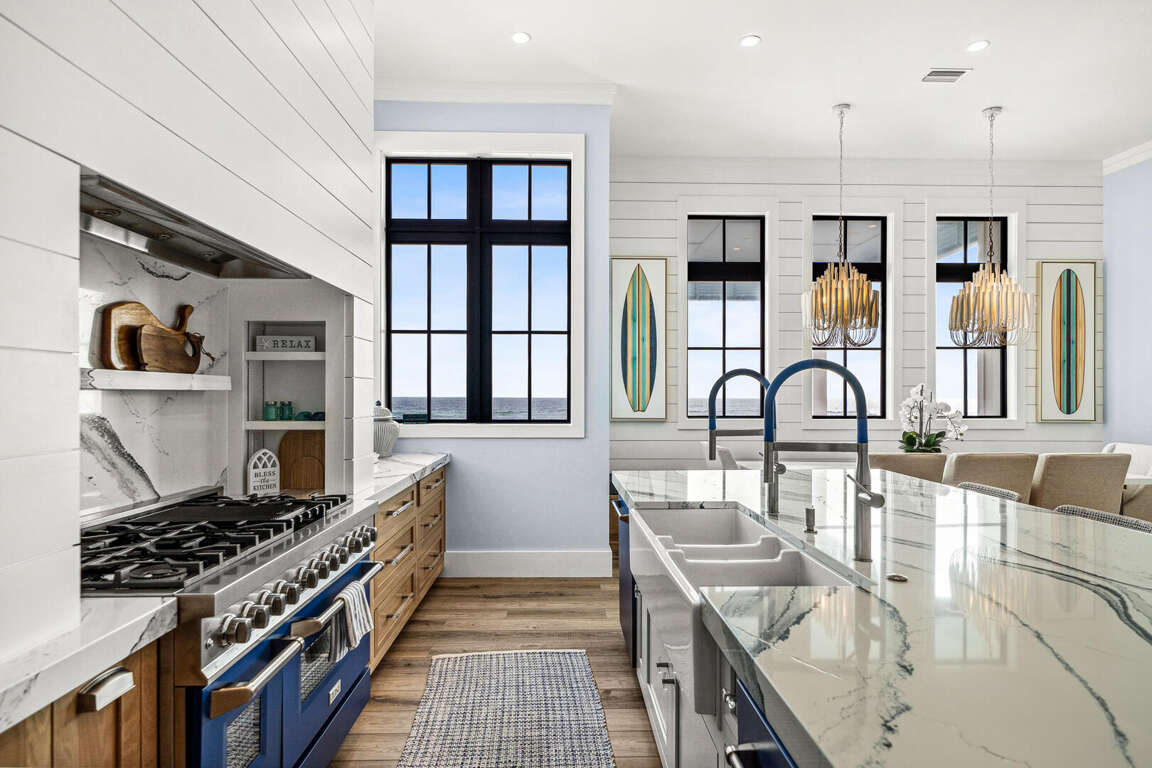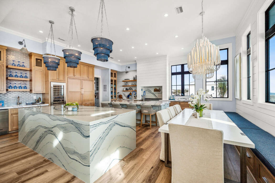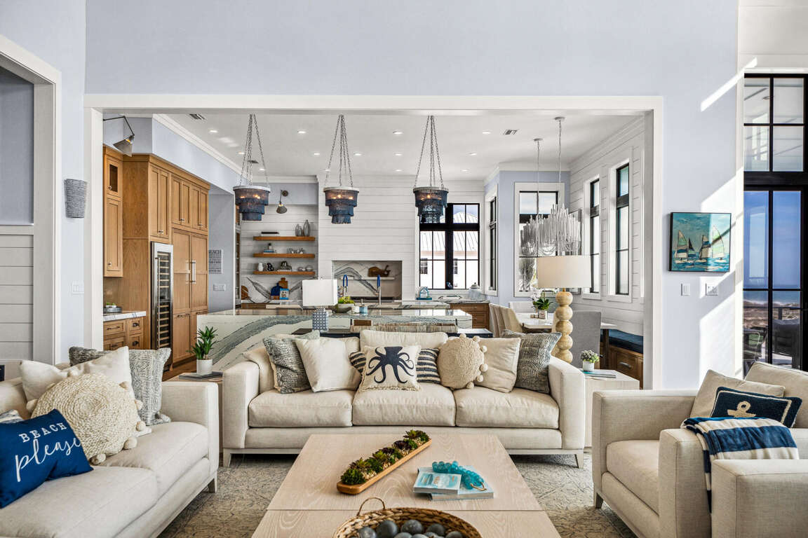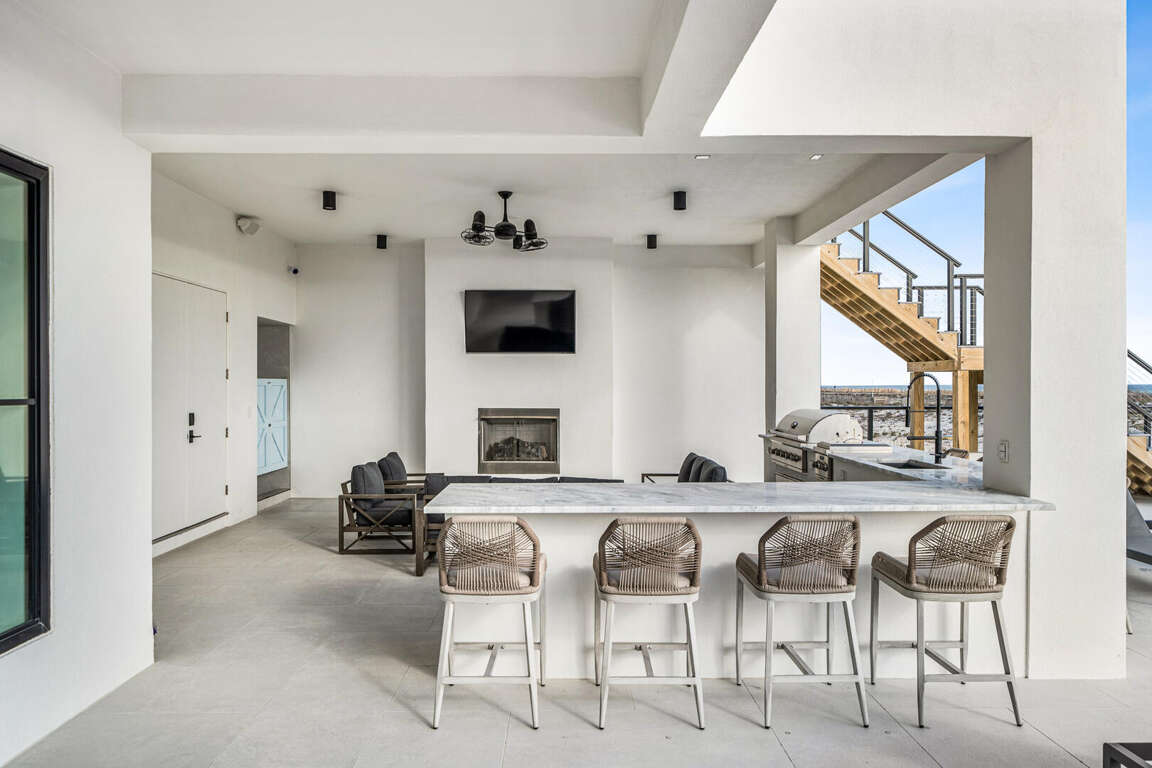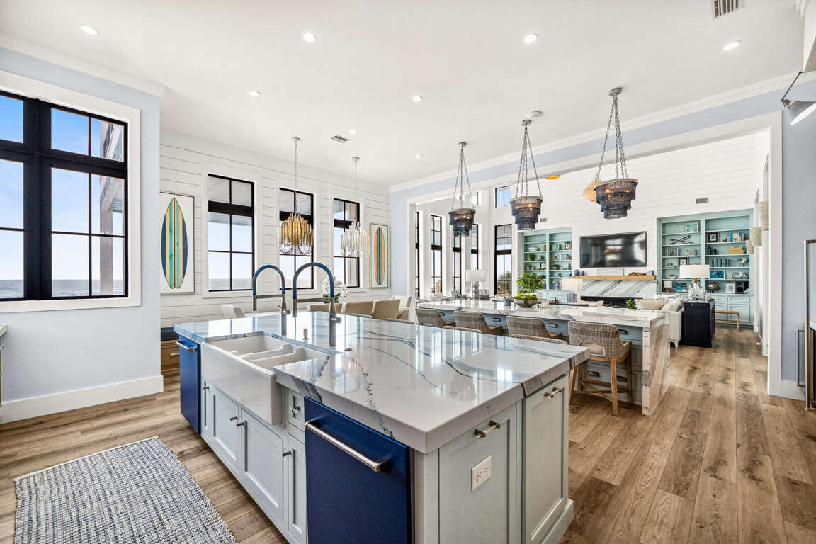 Totally Beachin’ is finally here! This direct beachfront new construction home was just completed in early 2025 and has it all! From the moment you enter the home on the 2nd floor level, you are immediately struck by the breathtaking two story views of the gulf from the family room. The 5 bedroom, 6 and 1/2 bath property comes with 3 king bedrooms and en-suite bathrooms on each of the 3 levels all with large decks giving you direct, unobstructed views of the ocean. It has 1 queen bedroom on the front side of the home with views of the golf course and bay and 1 bunkroom complete with two queen beds on the bottom and two twin beds on top. The first floor comes complete with a game room, arcade room with gaming system, ping pong table and a very large movie theater room. Head out on to the first floor deck and experience the outdoor living, bar and grill area, outdoor shower and stunning swimming pool with direct views of the Gulf. From the 1st floor deck, step onto a private walking path that takes you straight to the beach. The home comes equipped with a full scale kitchen, complete with two islands and a dining room table. There are washer and dryer sets on both the 1st and 2nd floors, multiple refrigerators and wine refrigerators in the kitchen and first floor game room. There are coffee stations on all three levels and an elevator that services all floors of the home.