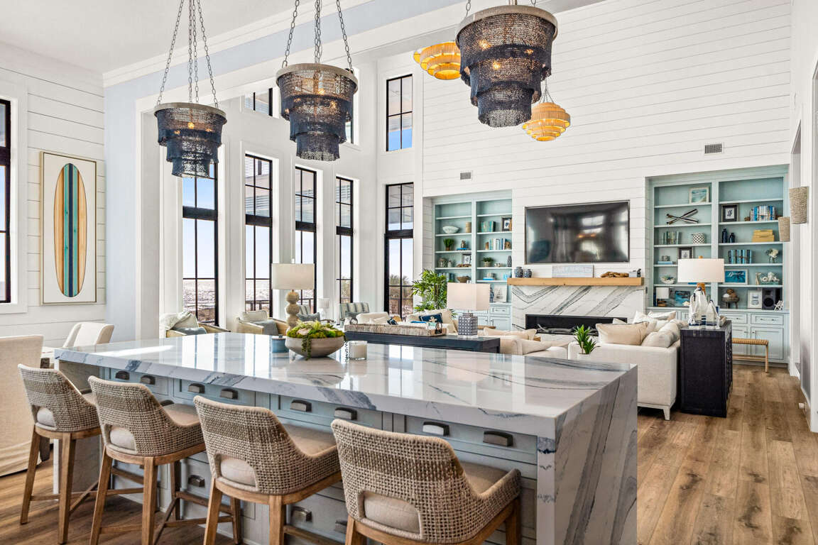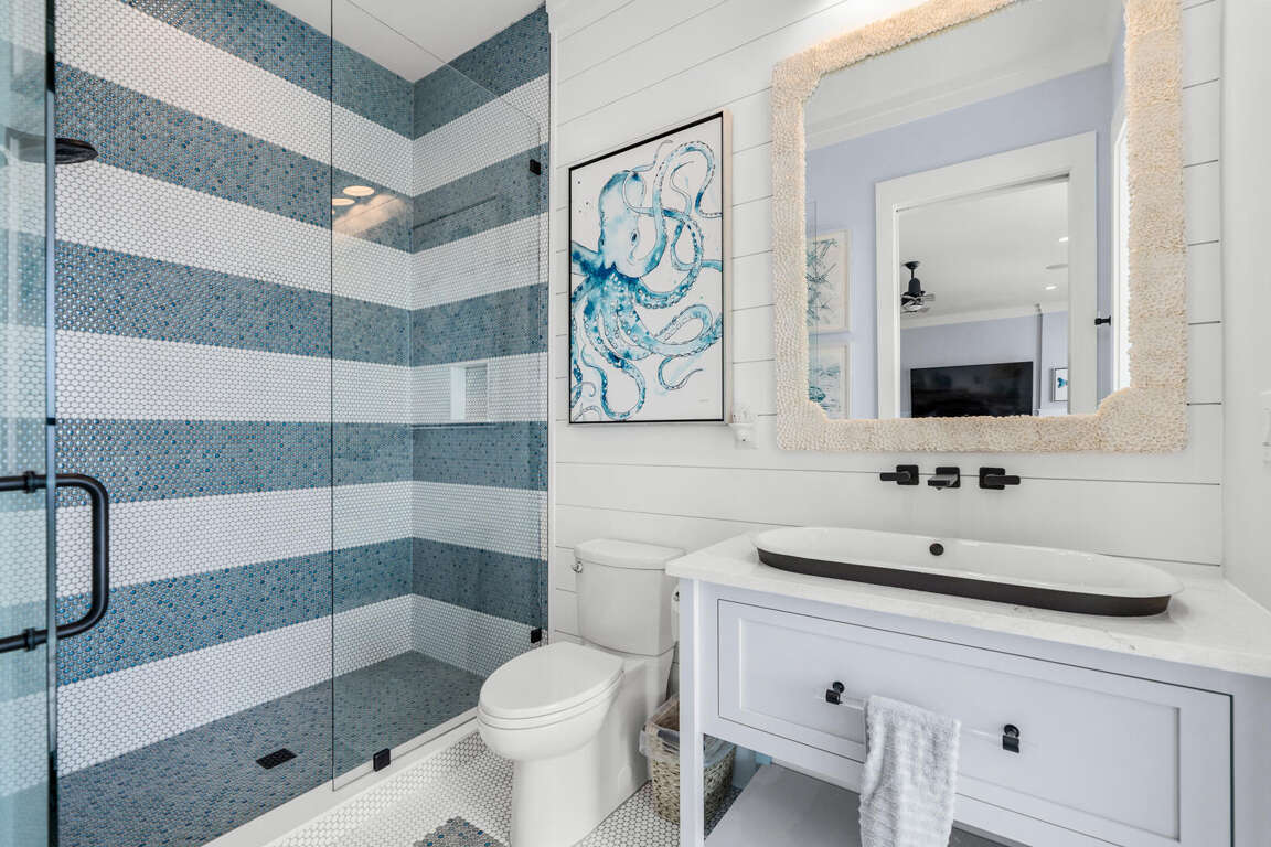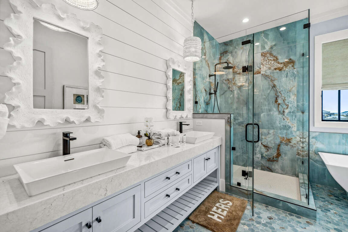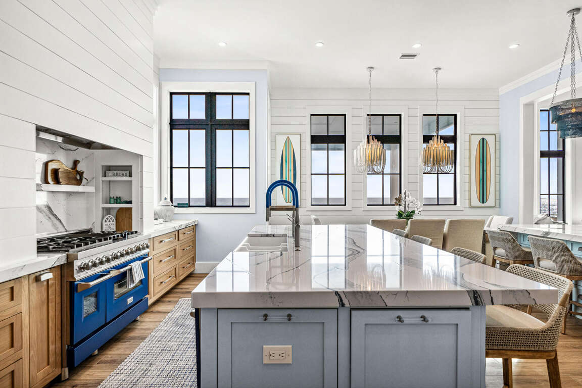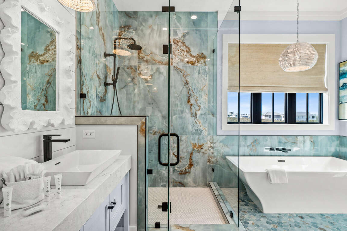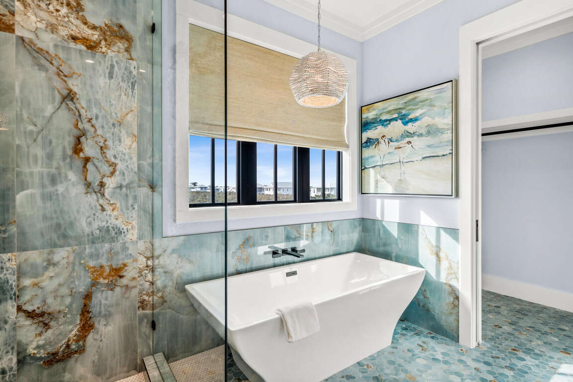 Totally Beachin’ is finally here! This direct beachfront new construction home was just completed in early 2025 and has it all! From the moment you enter the home on the 2nd floor level, you are immediately struck by the breathtaking two story views of the gulf from the family room. The 5 bedroom, 6 and 1/2 bath property comes with 3 king bedrooms and en-suite bathrooms on each of the 3 levels all with large decks giving you direct, unobstructed views of the ocean. It has 1 queen bedroom on the front side of the home with views of the golf course and bay and 1 bunkroom complete with two queen beds on the bottom and two twin beds on top. The first floor comes complete with a game room, arcade room with gaming system, ping pong table and a very large movie theater room. Head out on to the first floor deck and experience the outdoor living, bar and grill area, outdoor shower and stunning swimming pool with direct views of the Gulf. From the 1st floor deck, step onto a private walking path that takes you straight to the beach. The home comes equipped with a full scale kitchen, complete with two islands and a dining room table. There are washer and dryer sets on both the 1st and 2nd floors, multiple refrigerators and wine refrigerators in the kitchen and first floor game room. There are coffee stations on all three levels and an elevator that services all floors of the home.