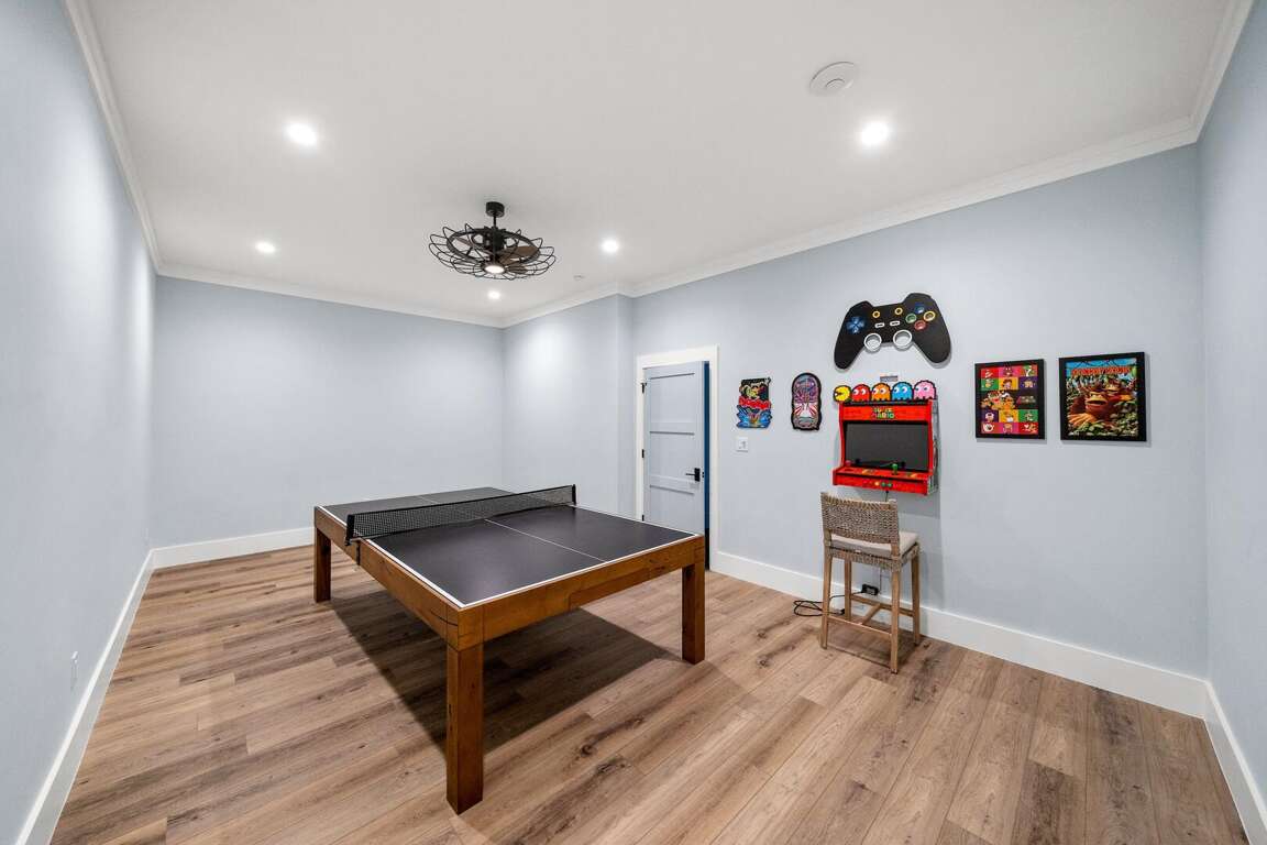 1st/Ground Floor: 1 King BR, Game Room, Arcade Room, Movie Theater Room, Wine Refrigerator, Coffee station, Outdoor Pool, Outdoor Living Area