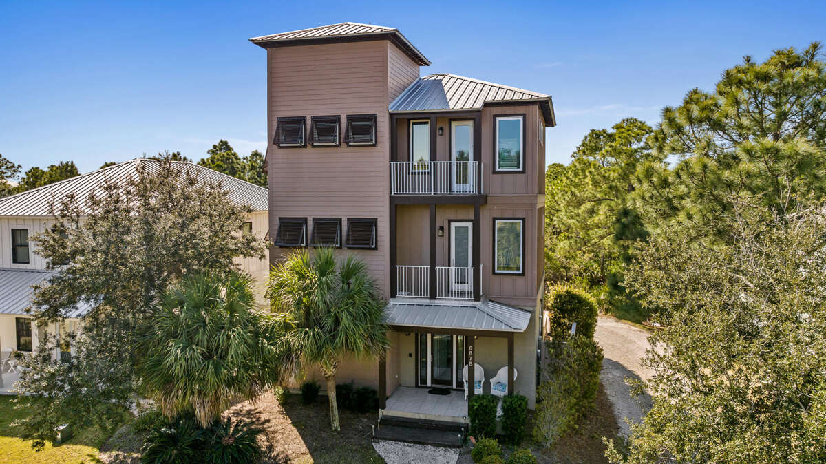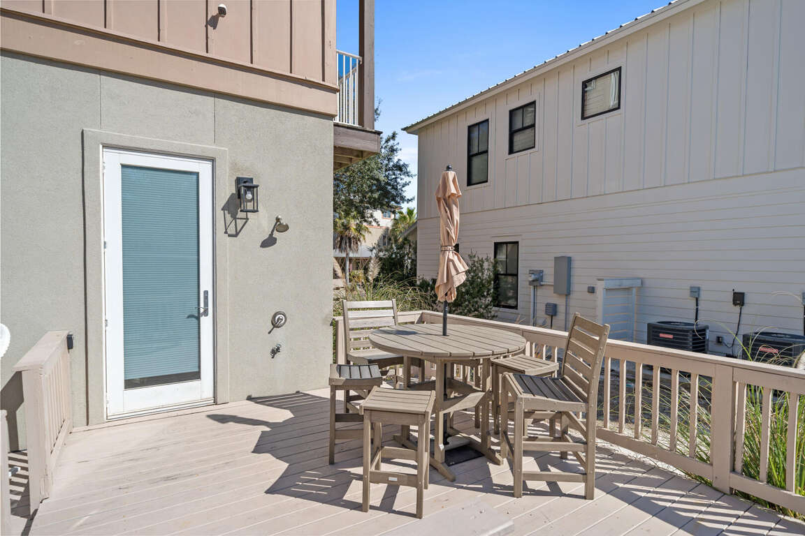 House in Gulf Shores with 4 bedrooms, Gulf-view balcony, private beach access, and Kiva Dunes golf nearby, a practical place to stay for groups.