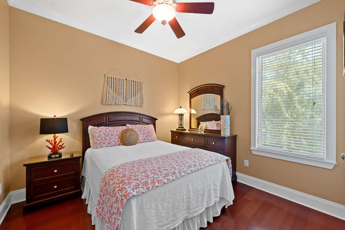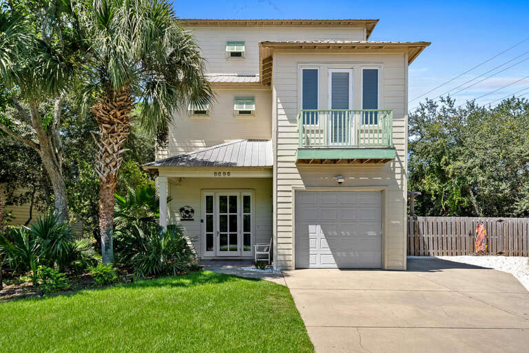 This Gulf Shores house is a place to stay for groups, with 4 bedrooms, 3.5 baths, sleeps 10, and a short walk to the beach near Kiva Dunes.