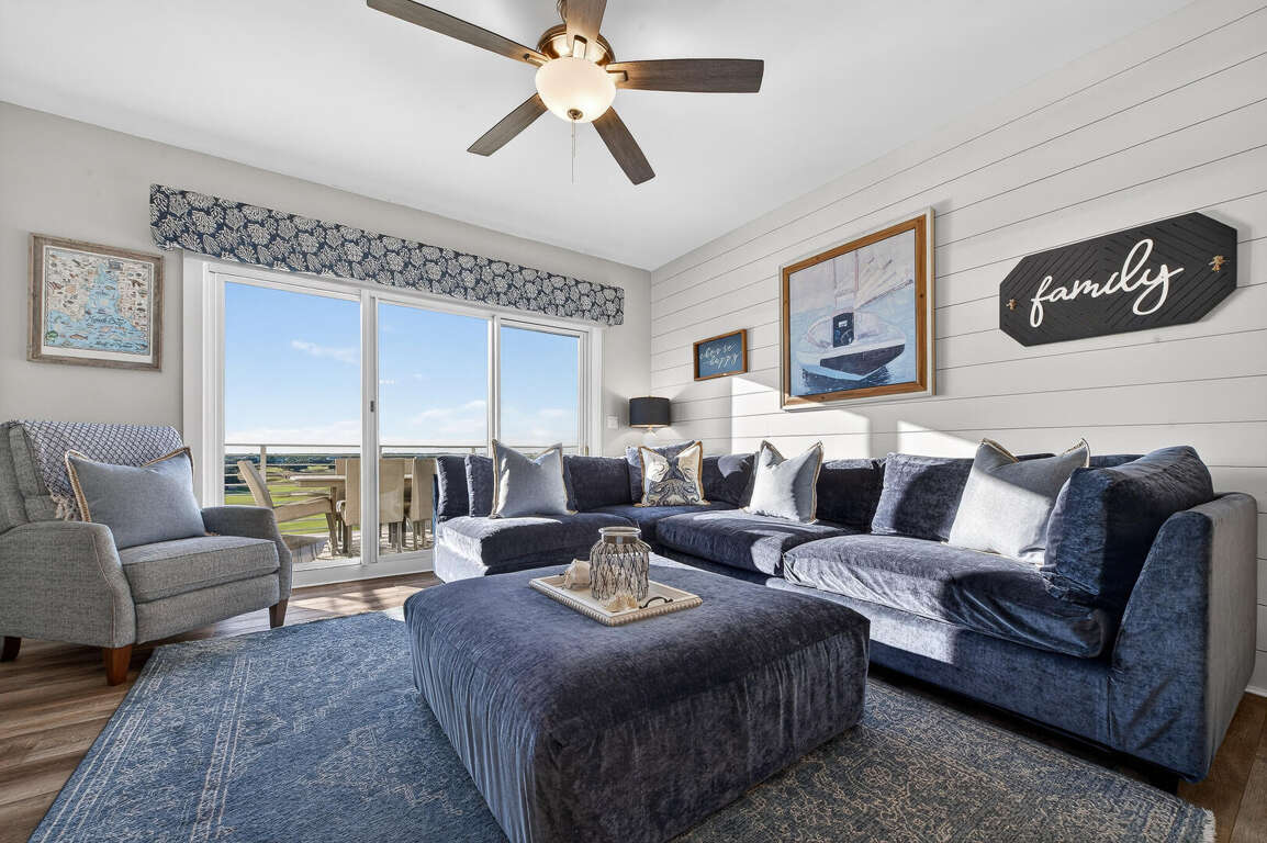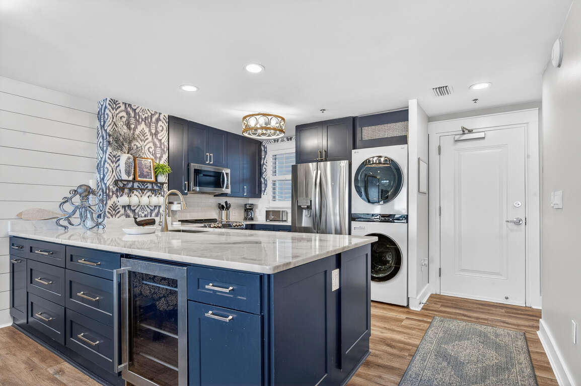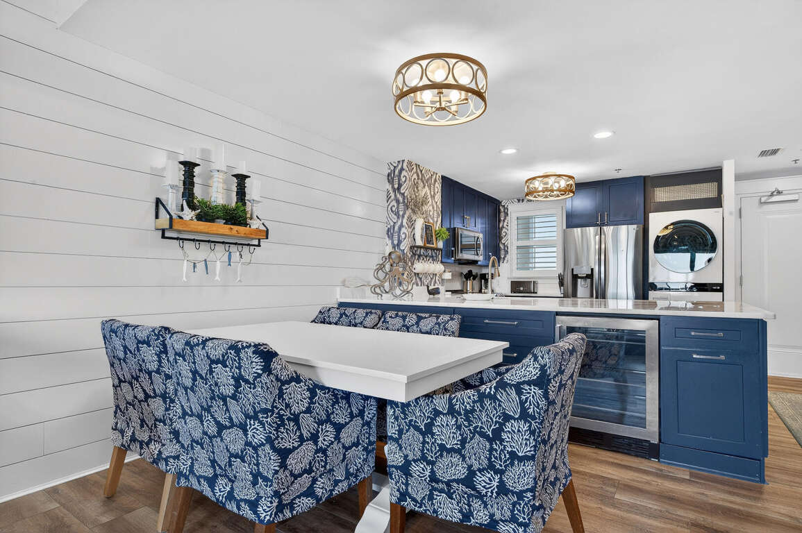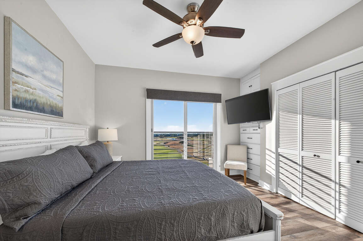 Stay in the heart of Kiva Resort by booking Kiva Lodge 604! This two-story penthouse unit features 4 bedrooms each with in-suite bathrooms, four balconies and was fully renovated in Spring 2022. Two primary bedrooms upstairs feature king beds, spacious bathrooms featuring two sinks, newly tiled walk-in showers and jetted tubs. One bedroom with a balcony with eastern Bay and Gulf views to watch the sunrise each morning and the other a private open-air shaded courtyard to enjoy a book. Both bedrooms open to large balcony to enjoy expansive western Bay and Gulf views while overlooking the 18th hole of the renowned Kiva Golf course and let's not forget warm sea breeze and the incredible sunsets. On the first floor of the unit, enjoy the fully renovated kitchen with plenty of storage in its double-sided island and new LG appliances with a refrigerator that produces craft ice balls to pour your favorite whiskey/bourbon over each evening after a round of golf or day at Kiva's private beach. Two downstairs bedrooms feature a king bed facing the western views and a private bedroom with a queen bed and office space in case you need a quiet area to remote work while here. Both bedrooms have in-suite bathrooms featuring newly tiled walk-in showers. All bedrooms feature modern large flat screen TV's and the 75 in TV in the open living area affords great place to enjoy a sporting event or family movie night.