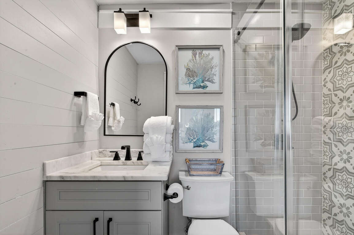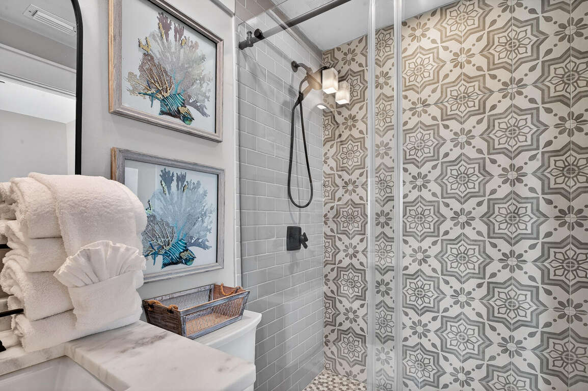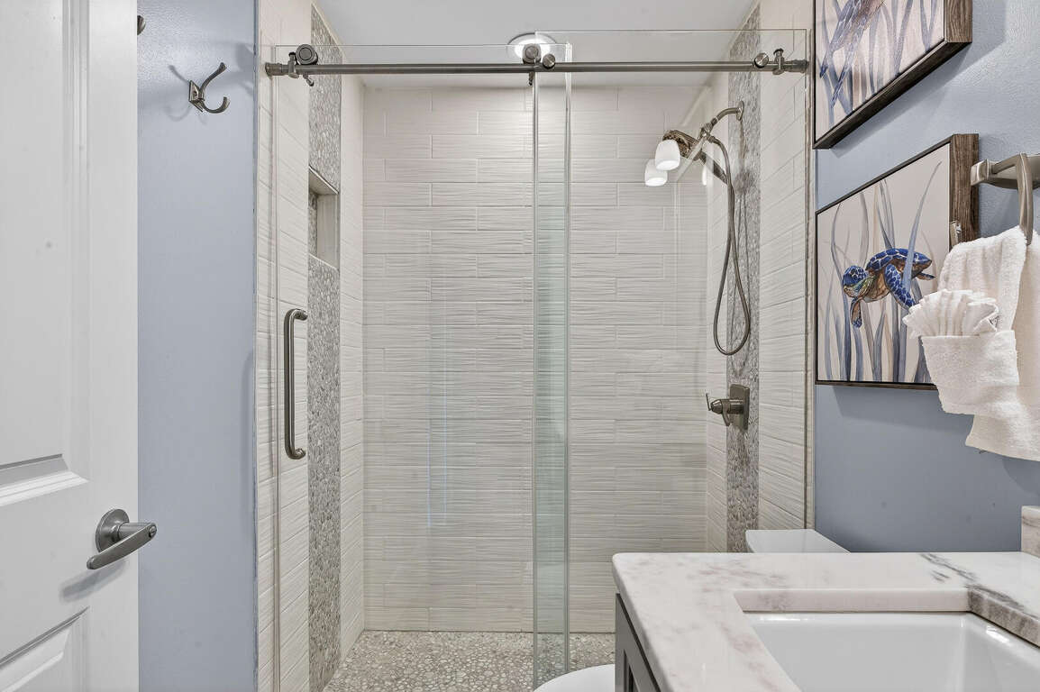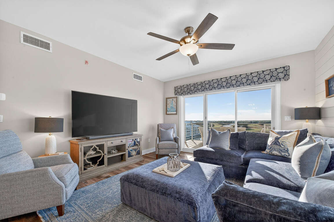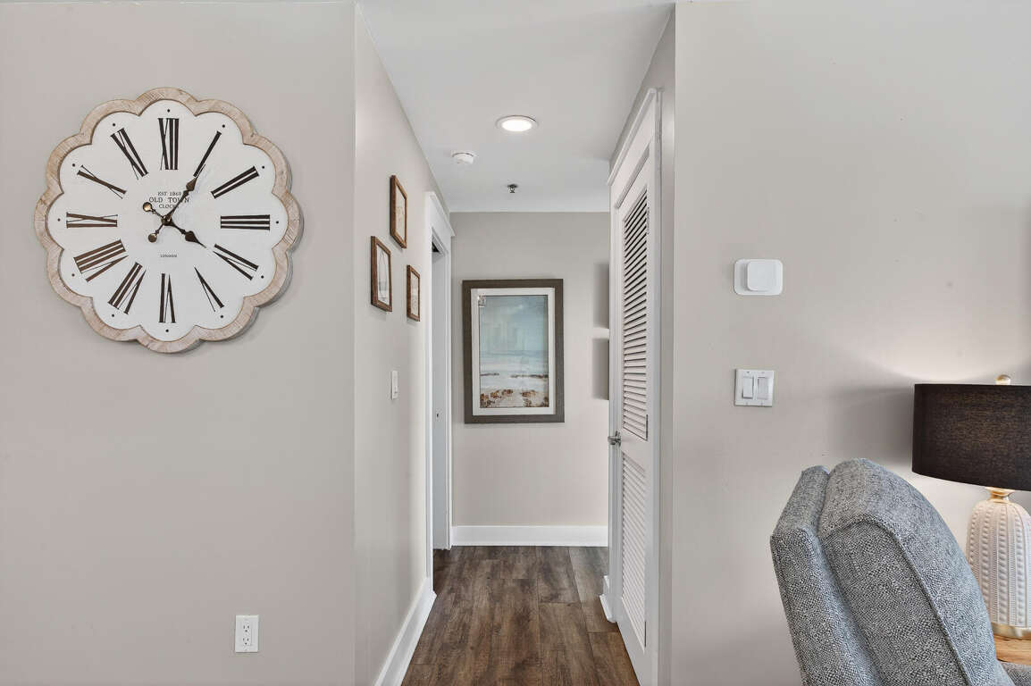 Stay in the heart of Kiva Resort by booking Kiva Lodge 604! This two-story penthouse unit features 4 bedrooms each with in-suite bathrooms, four balconies and was fully renovated in Spring 2022. Two primary bedrooms upstairs feature king beds, spacious bathrooms featuring two sinks, newly tiled walk-in showers and jetted tubs. One bedroom with a balcony with eastern Bay and Gulf views to watch the sunrise each morning and the other a private open-air shaded courtyard to enjoy a book. Both bedrooms open to large balcony to enjoy expansive western Bay and Gulf views while overlooking the 18th hole of the renowned Kiva Golf course and let's not forget warm sea breeze and the incredible sunsets. On the first floor of the unit, enjoy the fully renovated kitchen with plenty of storage in its double-sided island and new LG appliances with a refrigerator that produces craft ice balls to pour your favorite whiskey/bourbon over each evening after a round of golf or day at Kiva's private beach. Two downstairs bedrooms feature a king bed facing the western views and a private bedroom with a queen bed and office space in case you need a quiet area to remote work while here. Both bedrooms have in-suite bathrooms featuring newly tiled walk-in showers. All bedrooms feature modern large flat screen TV's and the 75 in TV in the open living area affords great place to enjoy a sporting event or family movie night.