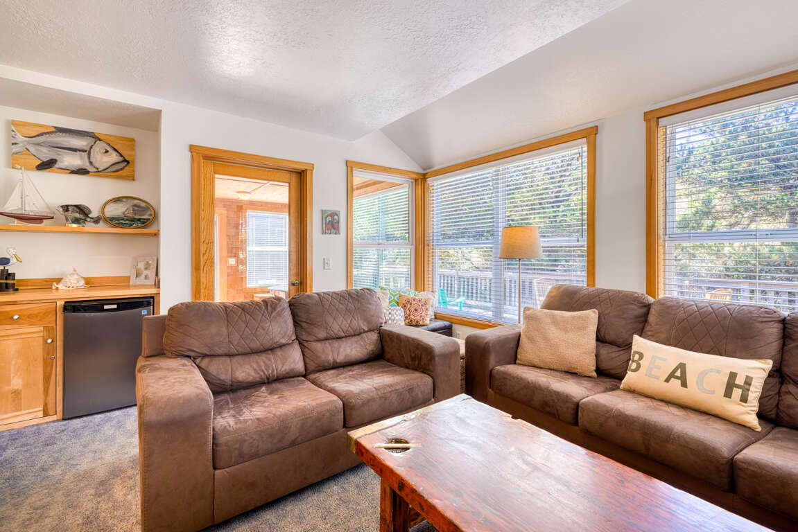 Dune Grass Haven – Family Retreat Steps from the Pacific City Beach Enjoy a morning coffee in the enclosed cedar-lined sunroom, cozy up by the three-sided gas fireplace, or relax in the fully fenced backyard with a gas grill and outdoor dining area. The open-concept main floor features a comfortable living area, a fully equipped kitchen with modern appliances, and a dining table perfect for group meals. The home also offers bikes, cornhole, a washer and dryer, and high-speed internet for guest convenience. Highlights Pet-friendly with a fully fenced backyard Space Layout The main level entry features the living room, kitchen, dining area, sunroom, half bath, and garage. Sleeps up to eight guests comfortably. Neighborhood Shorepine Village is a quiet and scenic community nestled among grassy dunes, pine trees, and walking paths. Guests enjoy direct access to the beach through a private boardwalk, as well as two miles of paved paths perfect for biking or strolling. The neighborhood is centrally located between Kiwanda Shores and Cape Kiwanda, close to restaurants, shopping, and tide pools. The community is carefully maintained and designed to blend seamlessly with the surrounding coastal landscape. Shorepine Village does not permit open-flame firepits or propane fire tables. Barbecues are permitted. Access This home is professionally managed by Kiwanda Coastal Properties, a locally owned company with over thirty years of experience managing Oregon Coast vacation rentals. Our office is located nearby and is staffed seven days a week to assist with any guest needs. Guests must be at least twenty-four years old to rent. Occupancy limits are strictly enforced and apply to the entire property during your stay. Day visitors may be permitted with prior approval from management. Pet Policy Up to two well-behaved dogs are welcome, with a non-refundable fee of $10 per night per dog. Pets may not be left unattended unless crated and are not allowed on furniture. Cleaning and Safety The home is professionally cleaned and maintained to high standards aligned with CDC guidelines. Linens, towels, and household supplies are provided for your stay. Cancellation Policy Half of the total booking cost is forfeited if the reservation is canceled or changed within thirty days of the scheduled arrival date. One hundred percent of the rental rate is charged if the reservation is canceled within seven days of arrival. If another guest rebooks the home, cancellation charges, less a thirty-five-dollar fee, will be refunded. Tillamook#STVR#85115000021 Come experience the beauty of the Oregon Coast at Dune Grass Haven in Shorepine Village. With its ideal location, pet-friendly amenities, and relaxing atmosphere, this Pacific City beach house provides the perfect setting to unwind, explore, and create lasting memories.