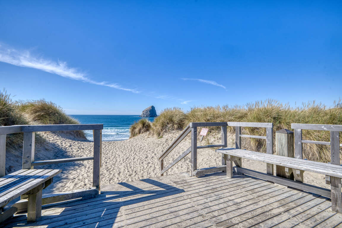 Welcome to Dune Grass Haven, a bright and inviting three bedroom, two and a half bath home in the heart of Shorepine Village. This Pacific City vacation rental offers comfort and space for up to eight guests and two well-behaved dogs. Located right on the Shorepine Village beach access path, guests can enjoy an easy walk to the sand and a peaceful setting away from the busy Cape Kiwanda area. Perfect for families and friends. The ideal retreat for your next Oregon Coast getaway.