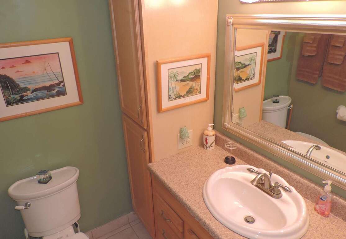 This unit does not have air conditioning, but cooling Hawaiian trade winds and ceiling fans in each room help keep the space comfortable year-round.<br />