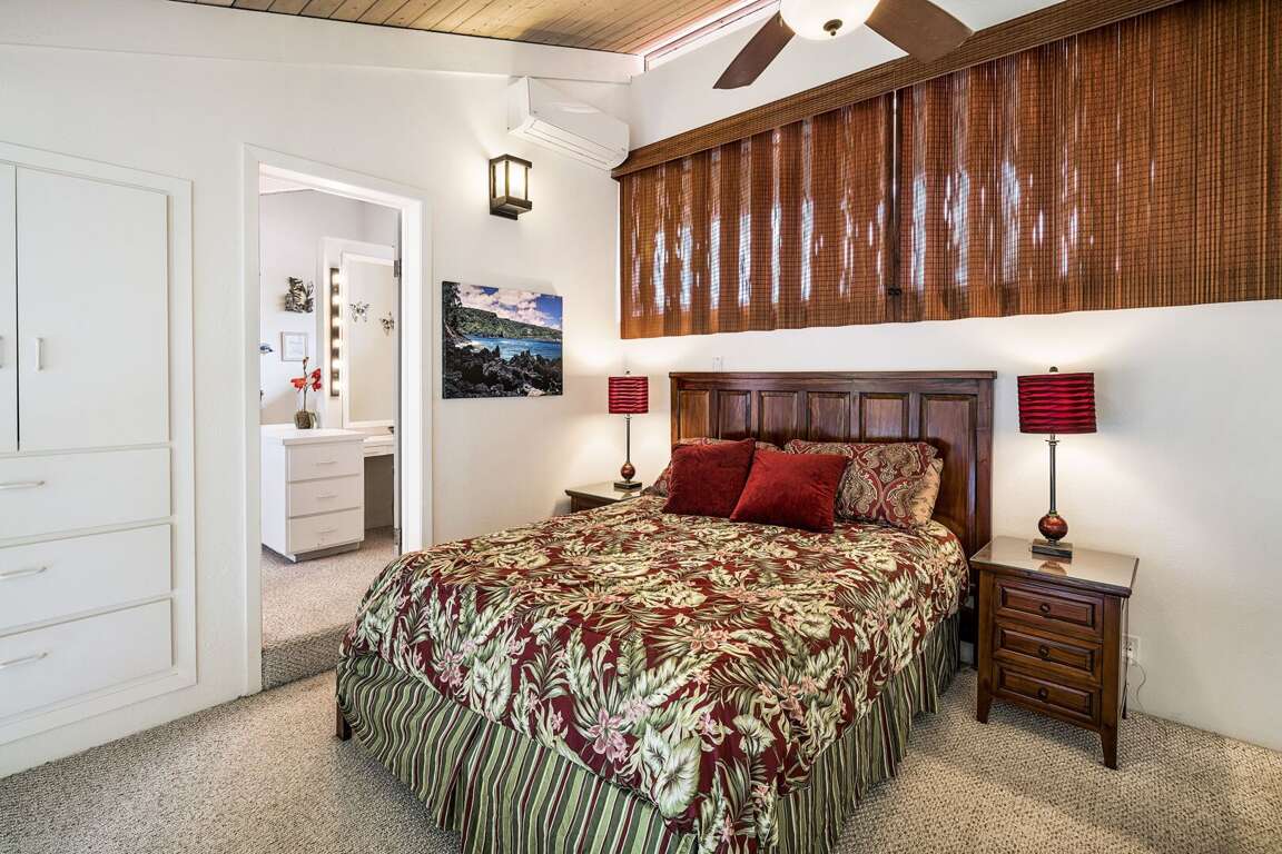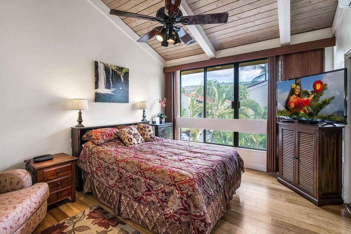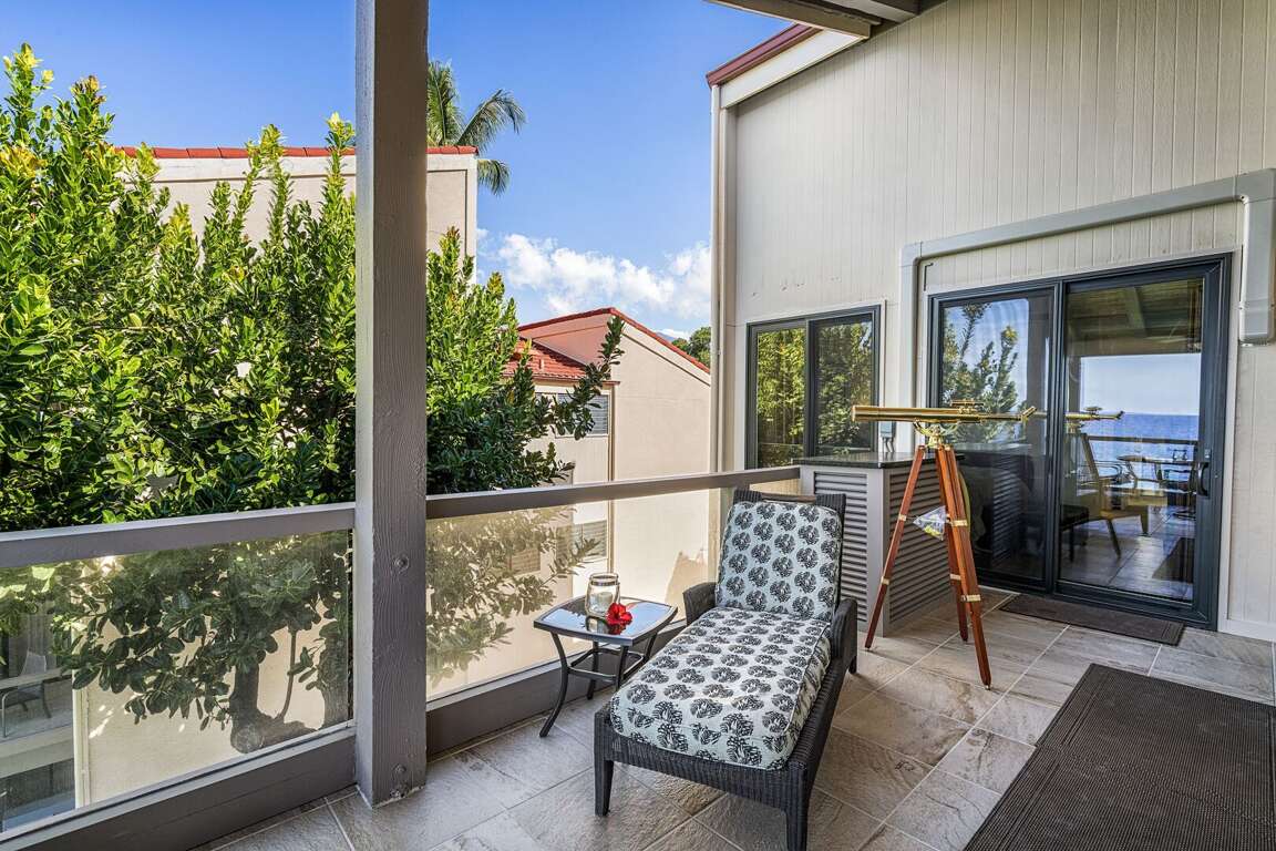 This 1,700 sq ft penthouse-style condo features soaring 20-ft vaulted ceilings, a unique loft suite, and a wraparound tiled lanai with seating for eight—perfect for dining, relaxing, or soaking in Kona’s famous sunsets. As an end unit, it captures cooling ocean and mountain breezes throughout.<br />