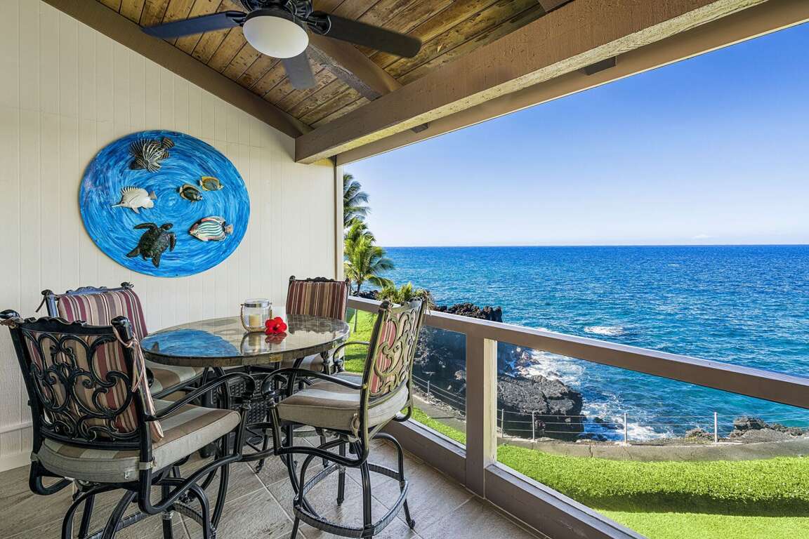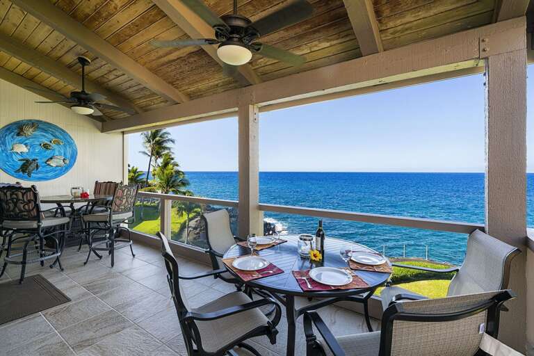 Penthouse condo rental in Keauhou, HI with wraparound lanai, ocean views, and walkable dining and snorkeling; a practical vacation rental for groups.