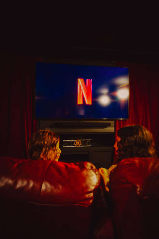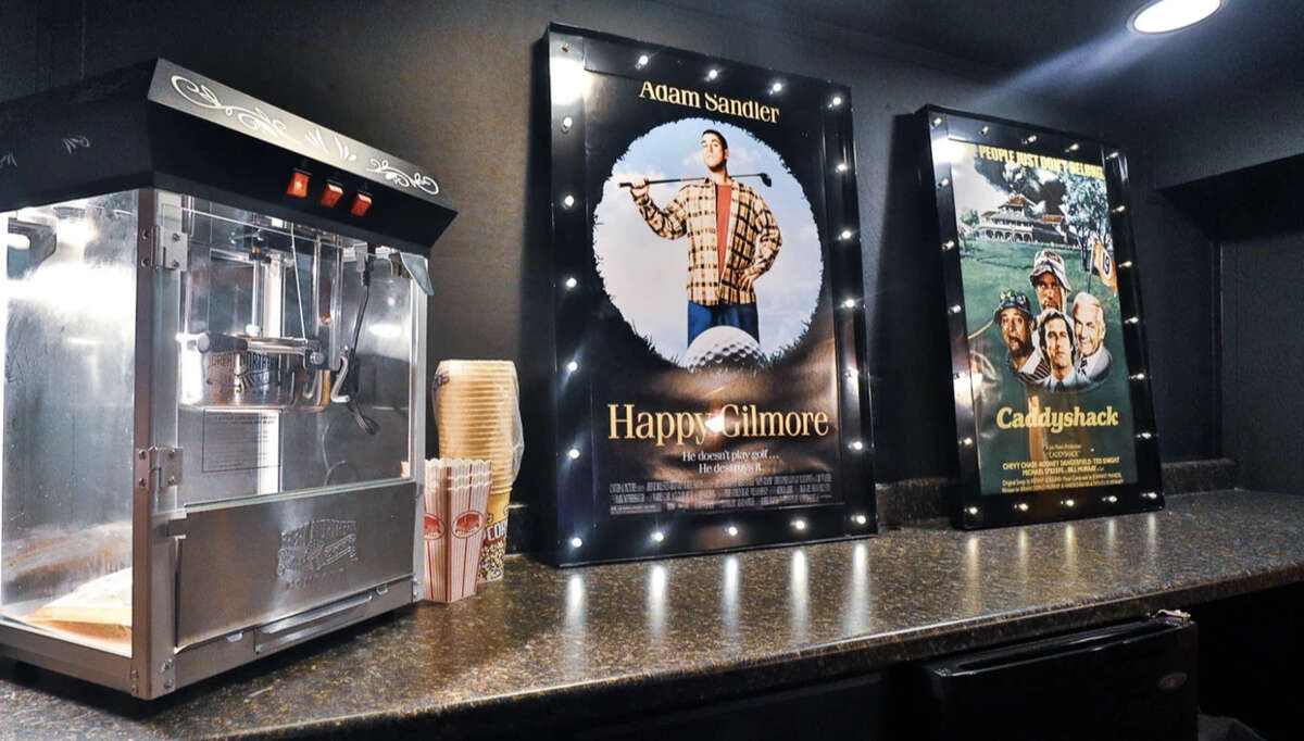 ⭑ Movie theater complete with comfy chairs and a popcorn machine