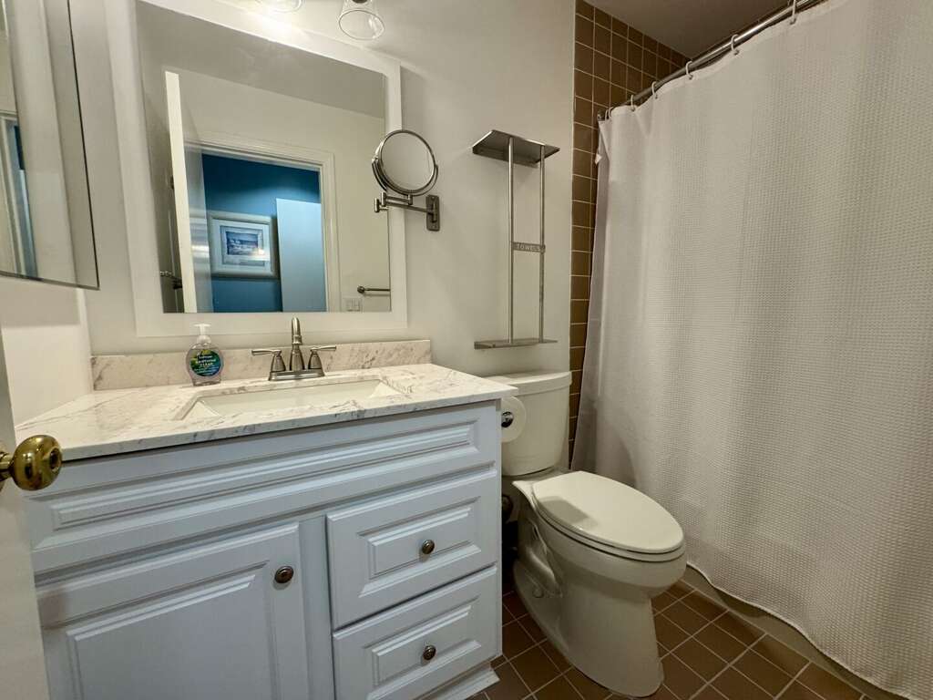 The spacious 3-bedroom vacation rental in Brewster, MA impresses with its well-appointed bedroom and bathroom features, ensuring comfort and convenience for up to 8 guests during their stay. Each bedroom boasts tasteful decor, with the primary bedroom offering a queen bed, AC, TV, and a private bath for added privacy. The second bedroom provides a queen bed, bunk bed, AC, and an en-suite bath, catering to various guest needs. Additionally, the third bedroom/den includes a queen bed, AC, TV, and an office area, offering versatility and extra space. The property features three full bathrooms, each with updated layouts and stylish decorations, ensuring a pleasant experience. Guests can enjoy the convenience of en-suite bathrooms and find ample storage solutions throughout the rental.