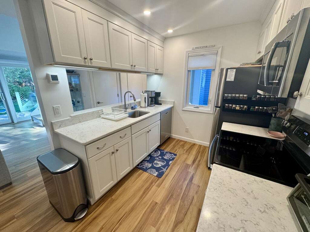 Enhancing both comfort and functionality, recent renovations and updates have elevated the quality of this Brewster, MA vacation rental, ensuring a delightful stay for guests. Renovation highlights include the addition of 4 mini-splits for efficient heating and cooling, a new water heater, and a modern white straight staircase with cable wires. Updated features encompass all-new closet organizers, ensuring ample storage space, and a fully stocked kitchen with brand-new equipment. The property boasts a new bathroom upstairs with a walk-in shower, a refreshed downstairs bathroom with a new toilet, mirror, and light fixtures, and a new full-size washer and dryer for convenience. Guests will also appreciate the new refrigerator with an ice machine and the trendy coastal-themed decor throughout the 1062 sqft living space.