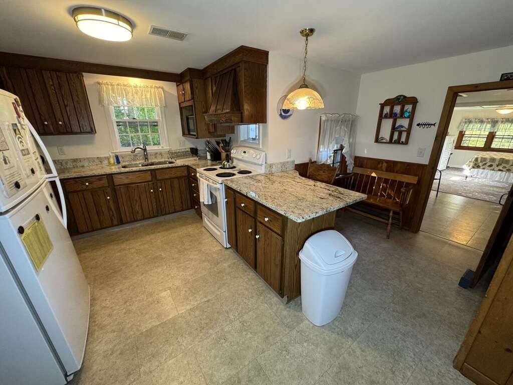 This 3 bedroom, 2 bath cottage was recently given a facelift: paint, granite counters and new floors have just been added. Enter to the spacious living room, boasting comfortable seating for 8 and a flat screen TV and Wifi. Cook dinners in the fully equipped kitchen with granite countertops, and enjoying eating them in the large dining area with skylight and sliders to the outdoors! Relax on the charming patio, just off the primary bedroom with a new Casper memory foam mattress for 2024!<br />