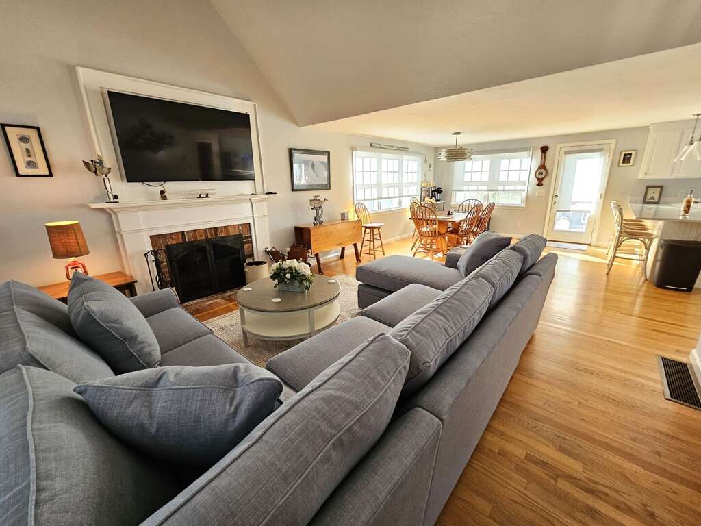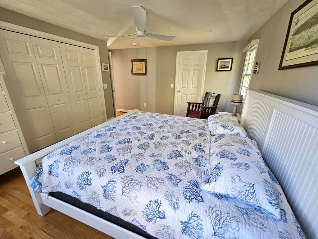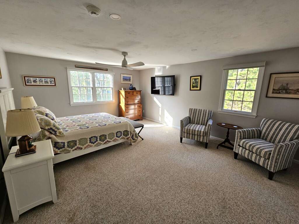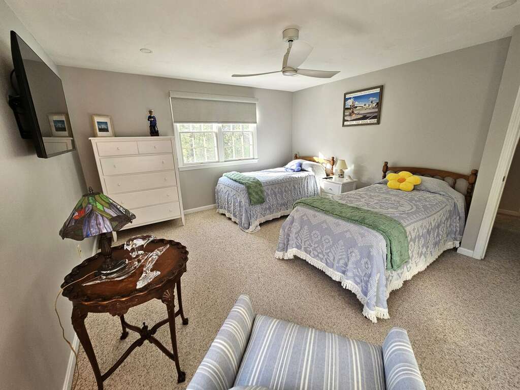 The sleeping arrangements comfortably accommodate guests with a King bed in the first-floor primary suite, a Queen bed in the second-floor second bedroom, and two Twin beds in the second-floor third bedroom, making it an ideal setting for an unforgettable Cape Cod vacation.<br />