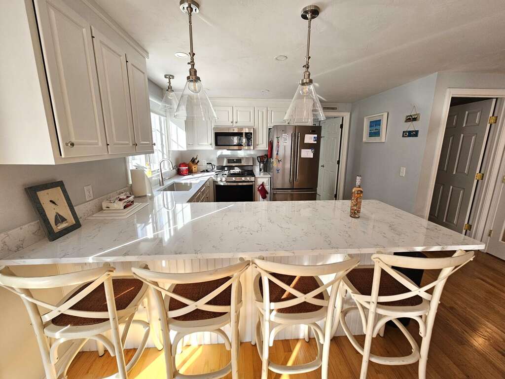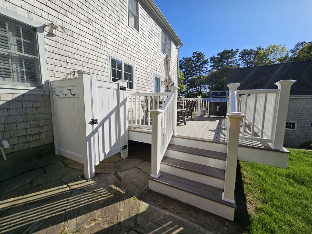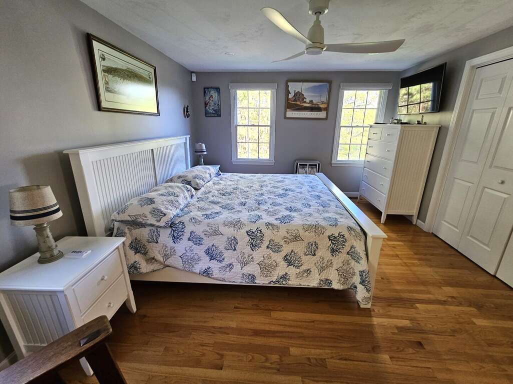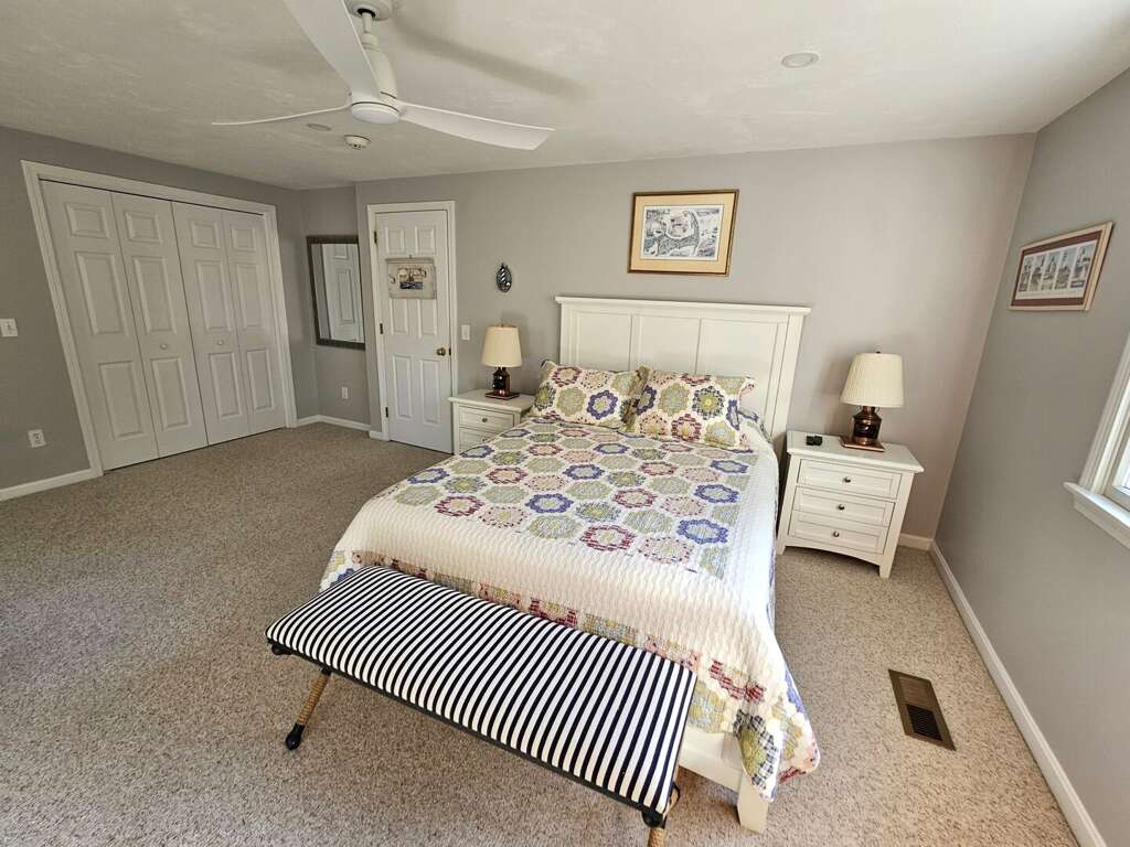 The sleeping arrangements comfortably accommodate guests with a King bed in the first-floor primary suite, a Queen bed in the second-floor second bedroom, and two Twin beds in the second-floor third bedroom, making it an ideal setting for an unforgettable Cape Cod vacation.<br />